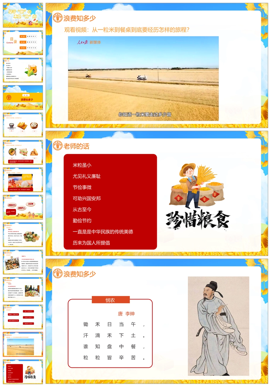 【5773】节日班会 1016世界粮食日《坚守“粮”心 不负“食”光》ppt课件+视频