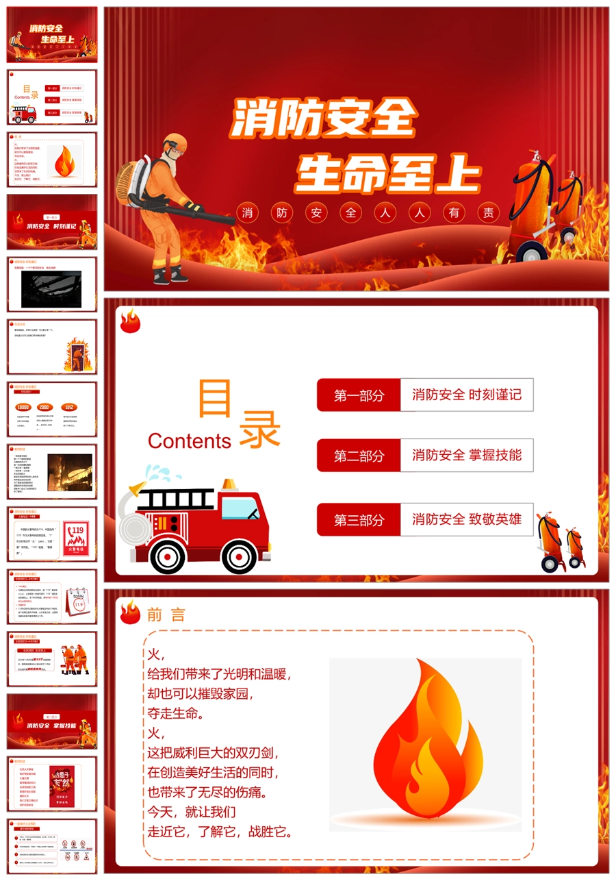 【5775】节日班会 1109全国消防日班会《消防安全生命至上》ppt课件+视频