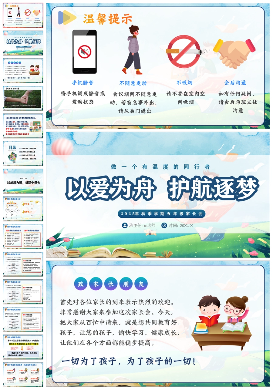 【5796】五年级期中家长会《以爱为舟,护航筑梦》ppt课件+发言稿