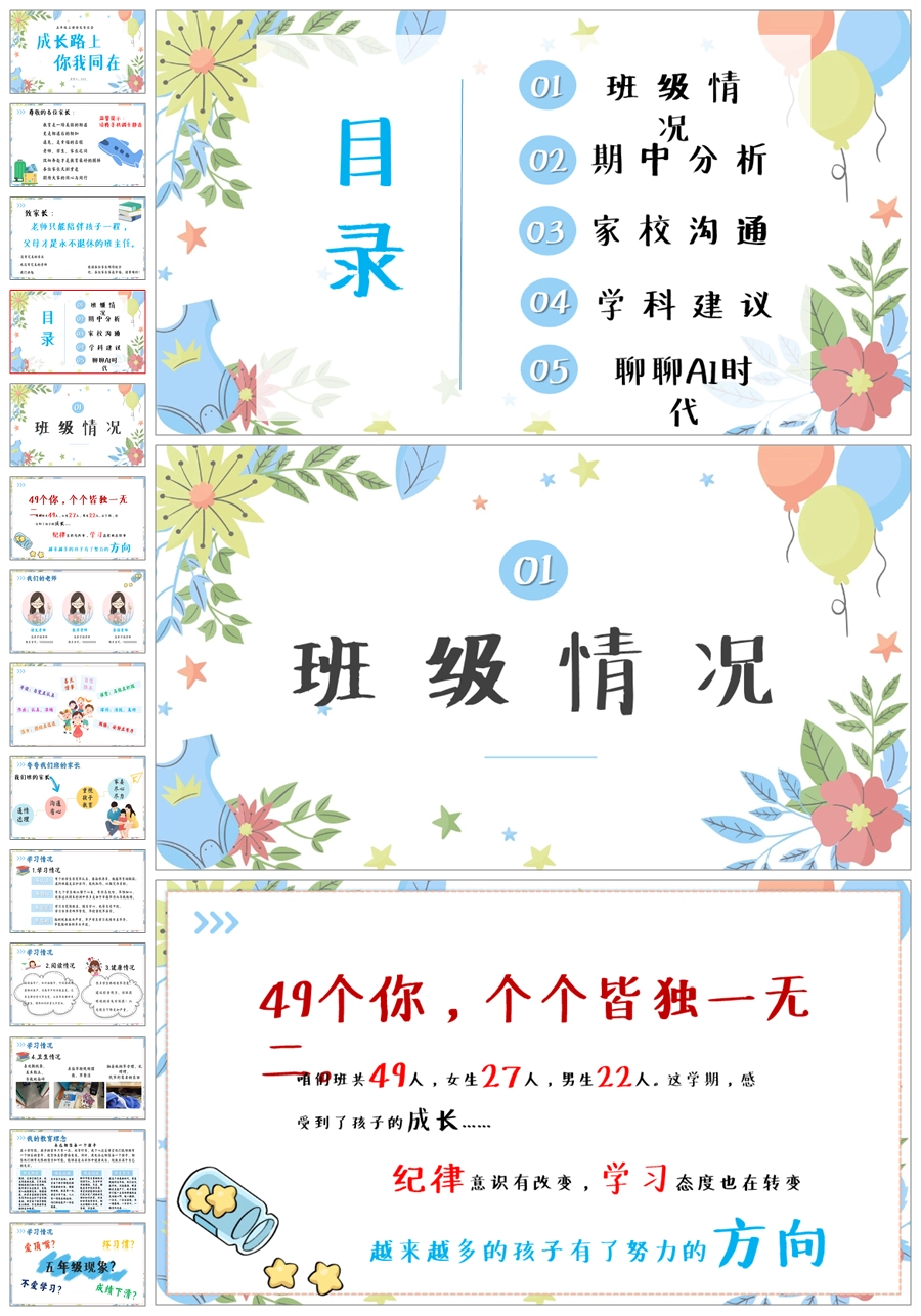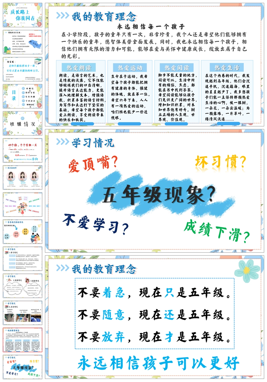 【5797】五年级《成长路上你我同行》家长会ppt课件+发言稿