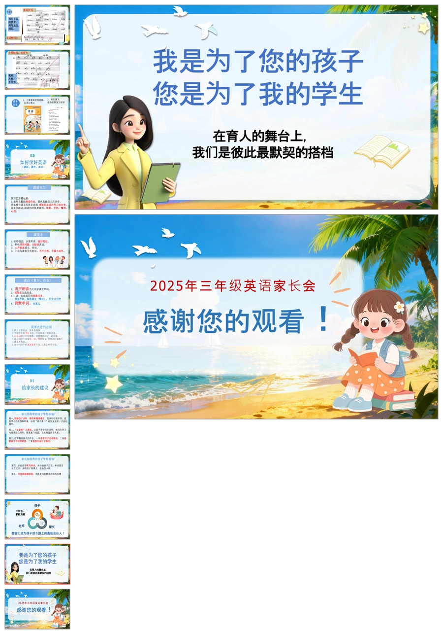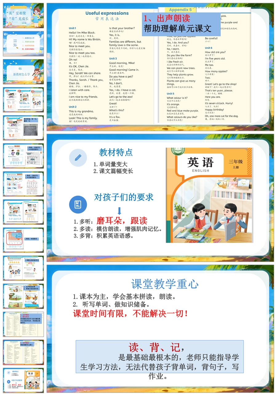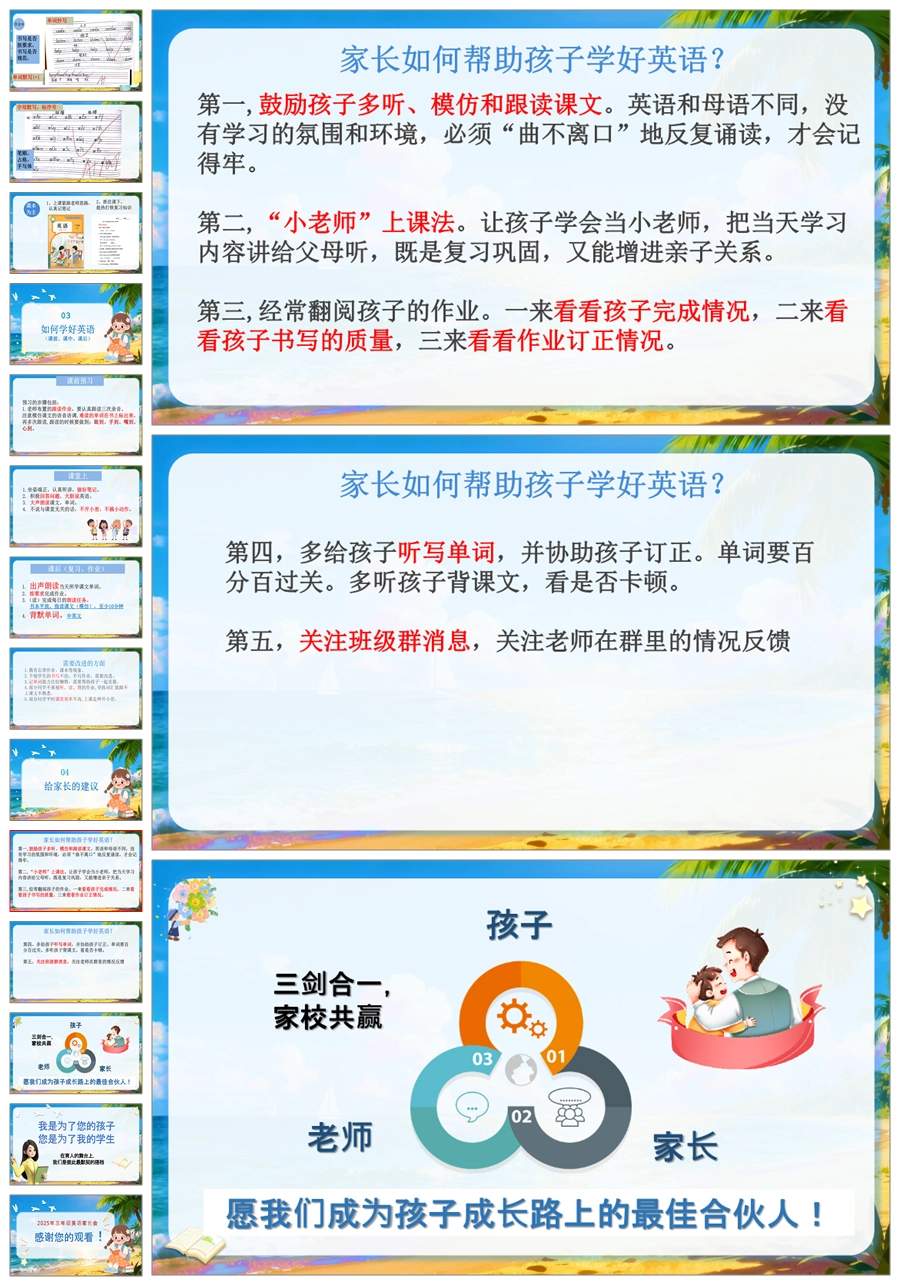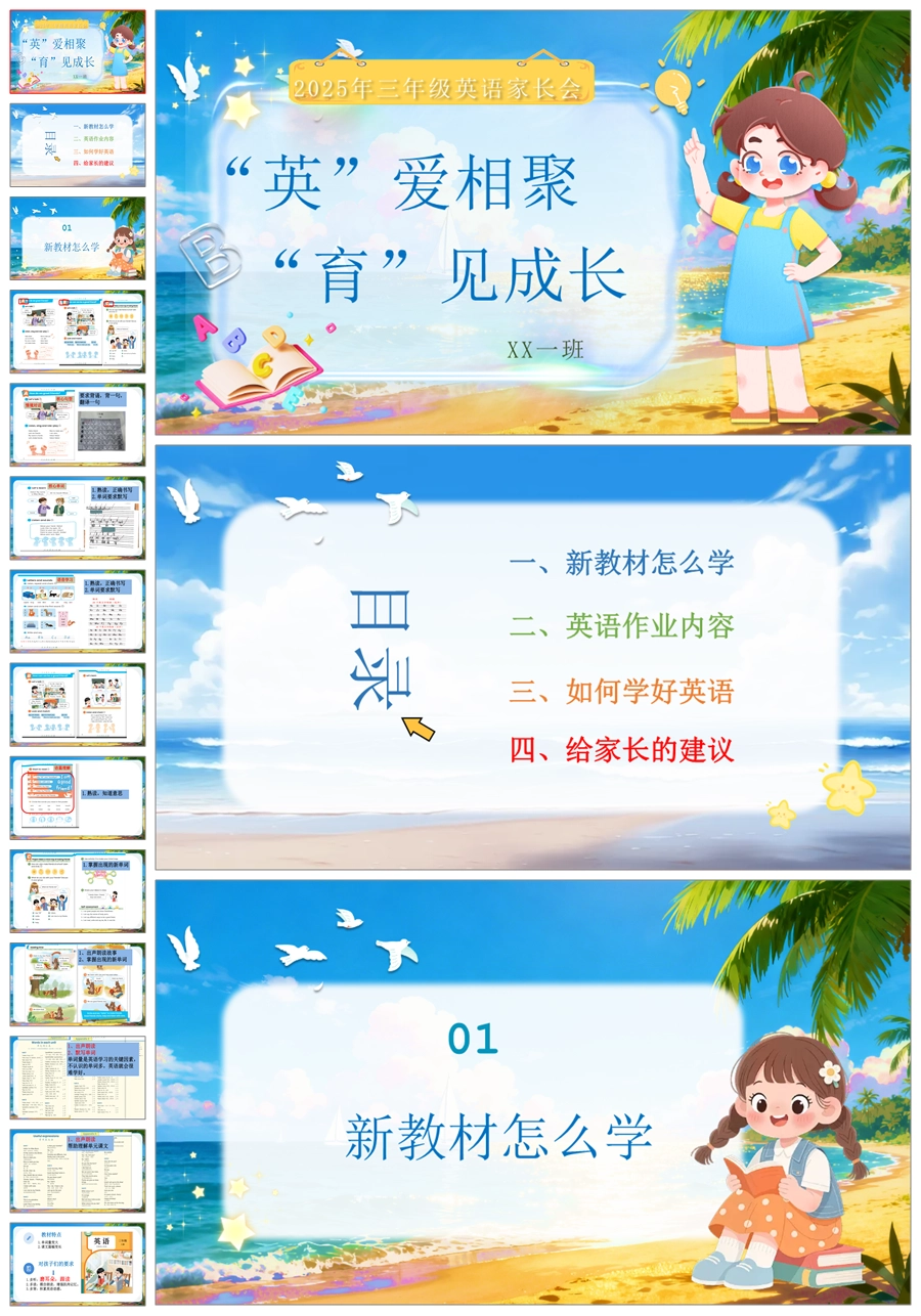 【5798】三年级英语家长会《英爱相聚,育见成长》ppt课件+发言稿