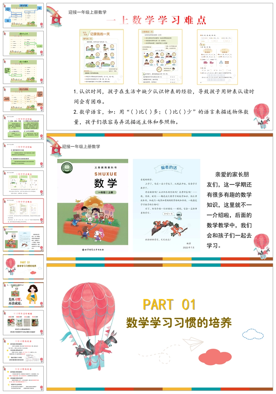 【5813】北师大《家校共育,数说成长》一年级数学家长会ppt课件+发言稿