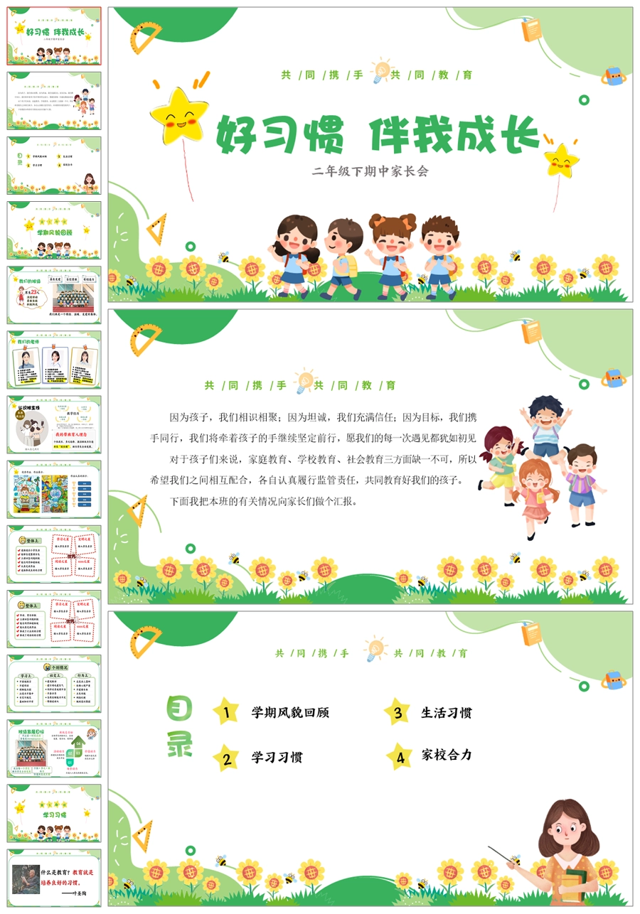 【5818】二下《好习惯伴我成长》二年级下学期家长会ppt课件+发言稿