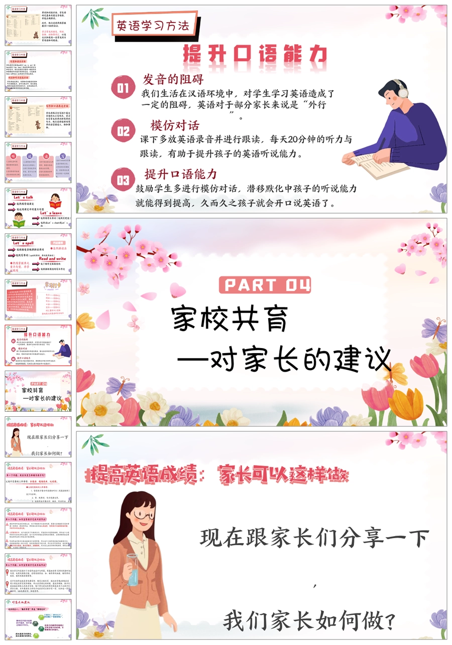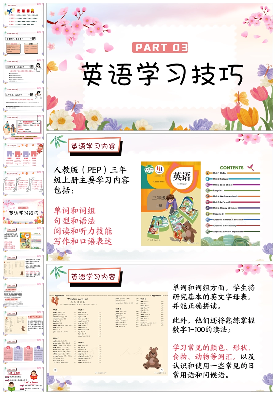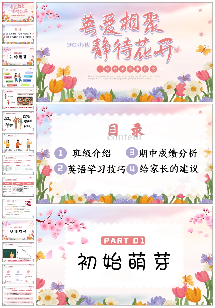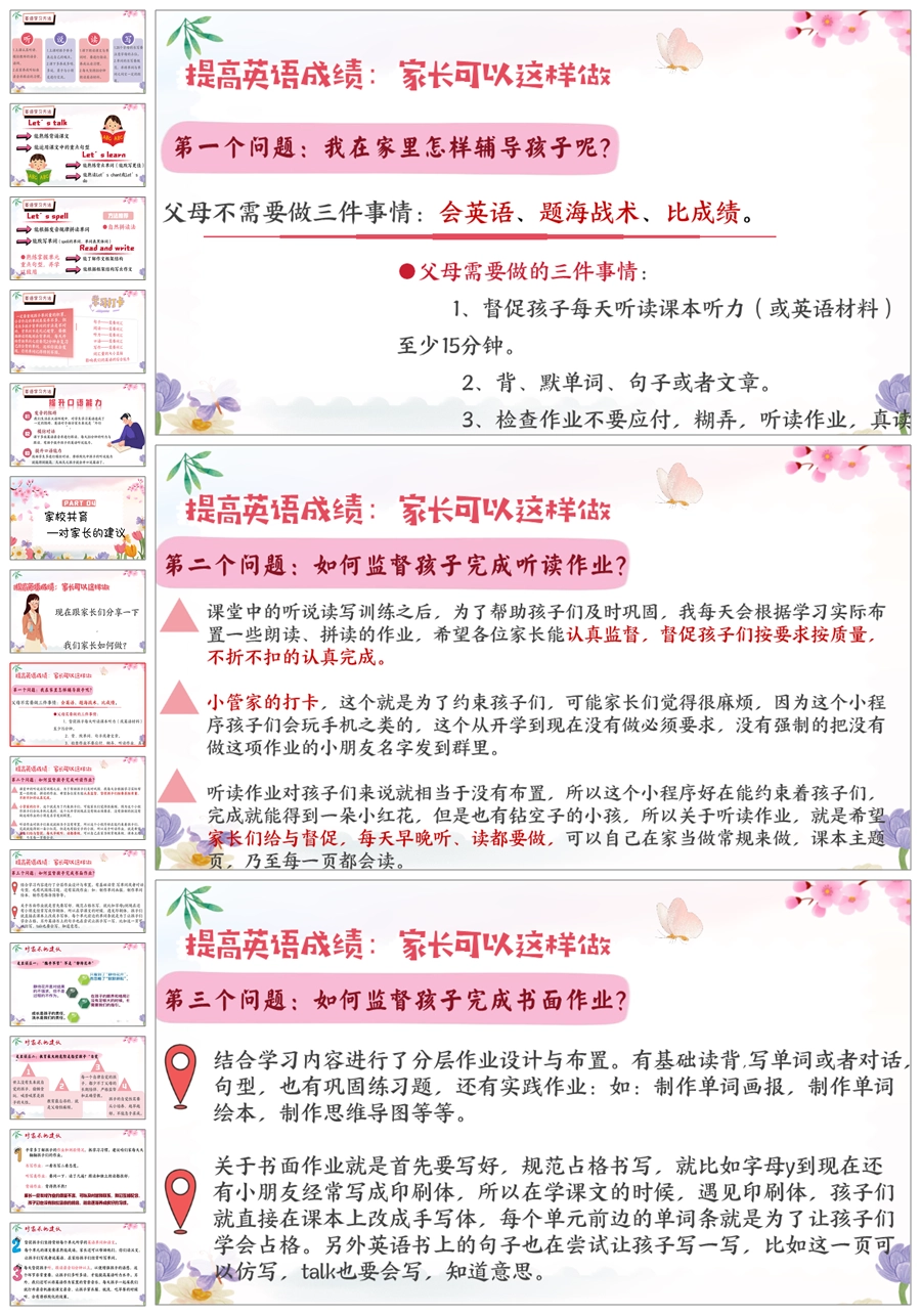 【5824】《英爱相聚,静待花开》英语家长会三年级ppt课件+发言稿