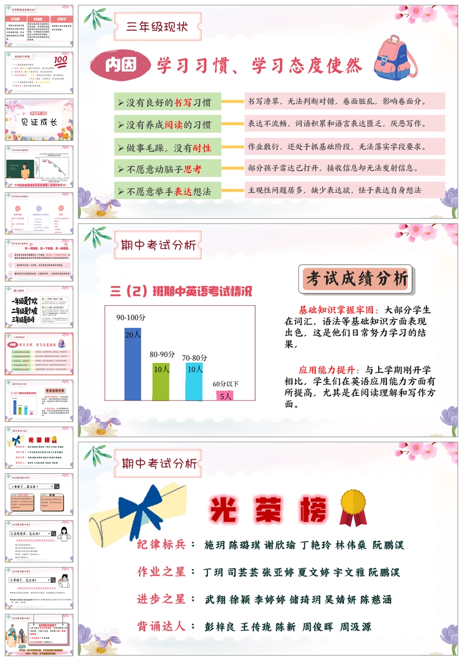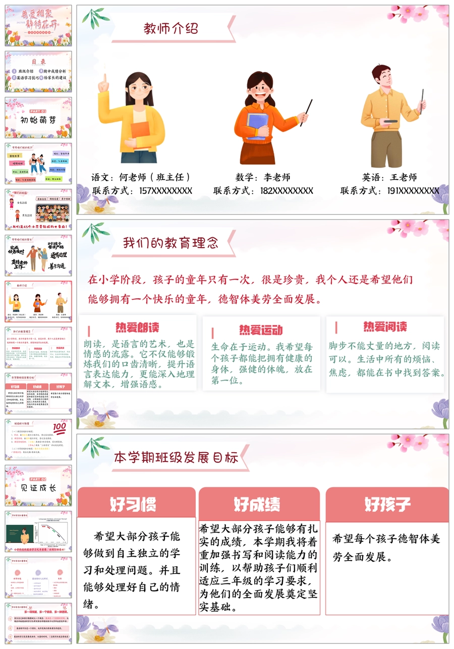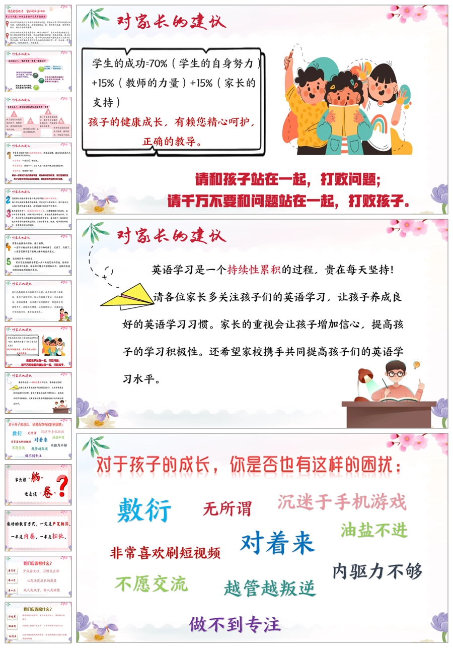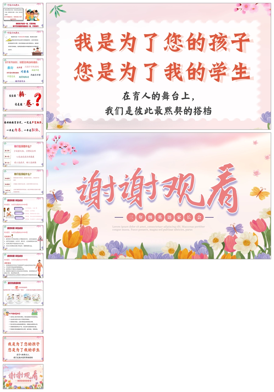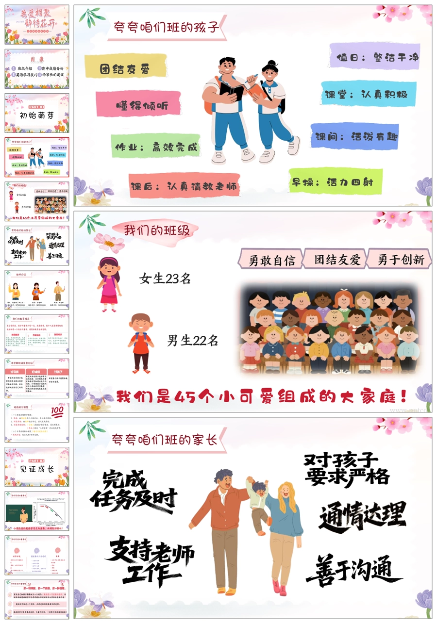 【5824】《英爱相聚,静待花开》英语家长会三年级ppt课件+发言稿