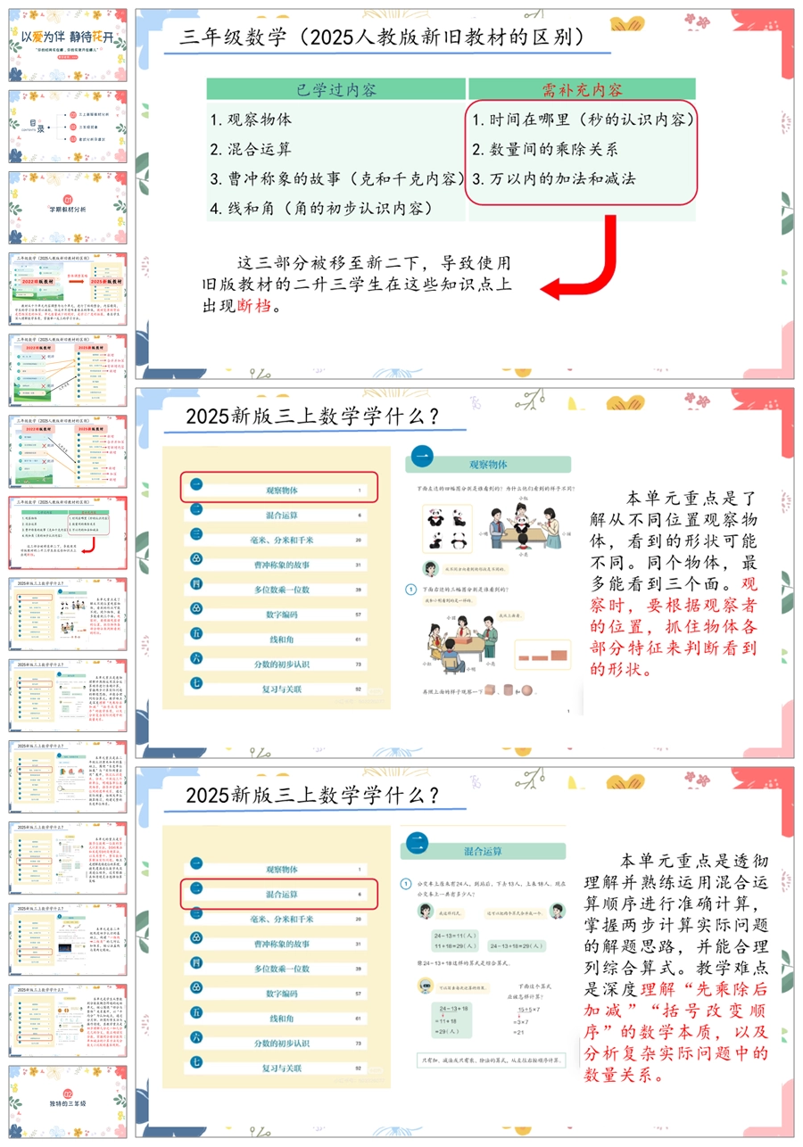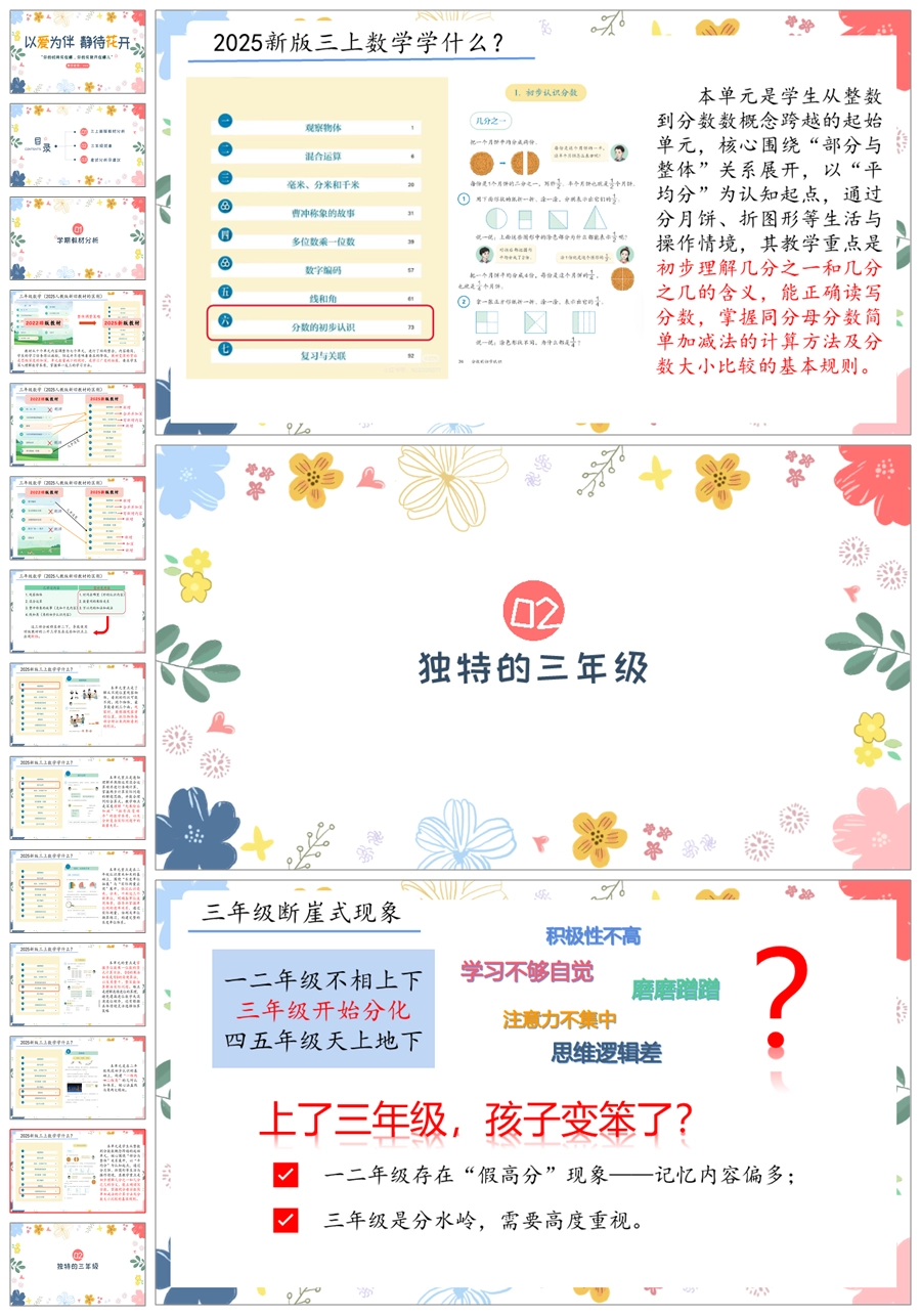 【5827】《以爱为伴静待花开》新版教材三上数学期中家长会ppt课件+发言稿