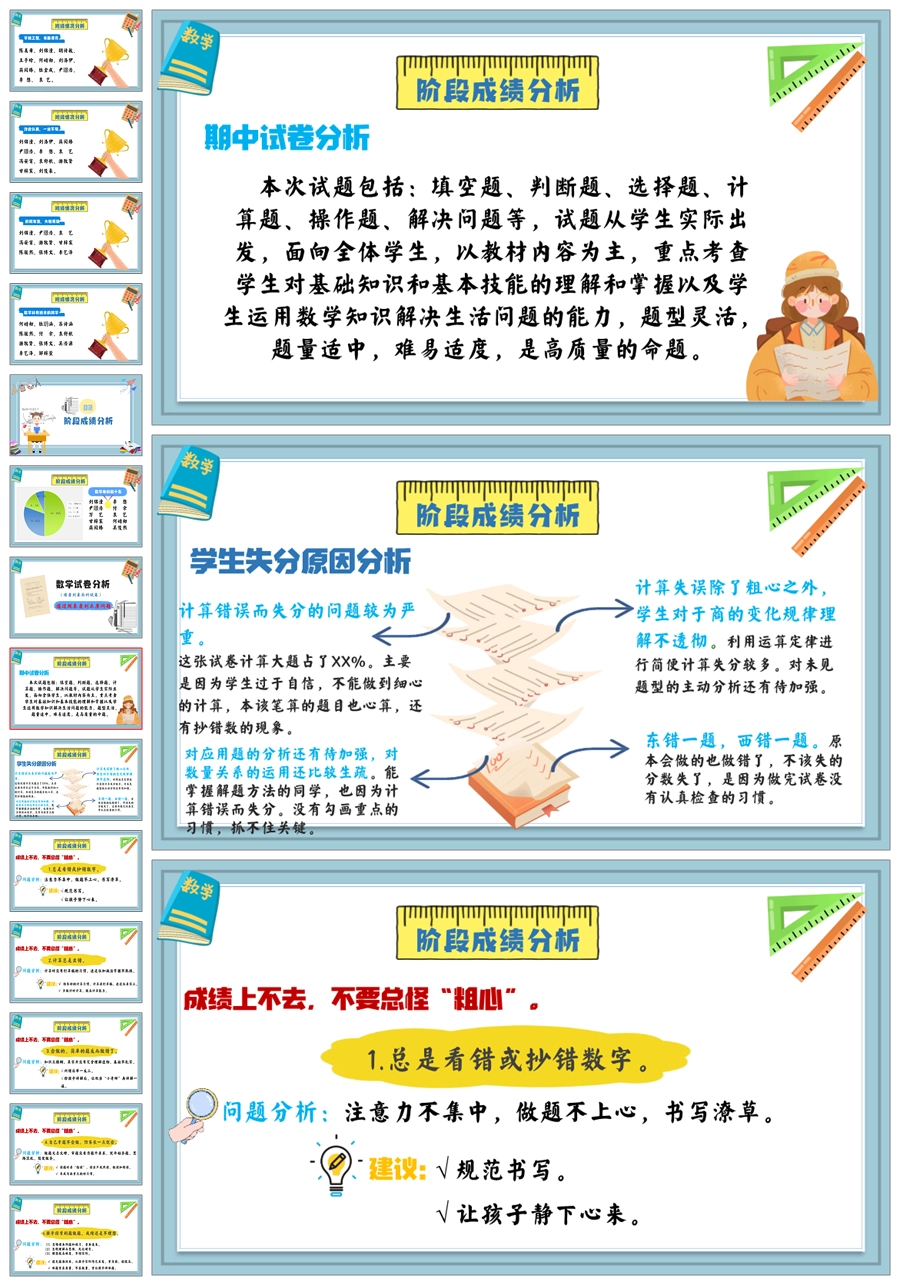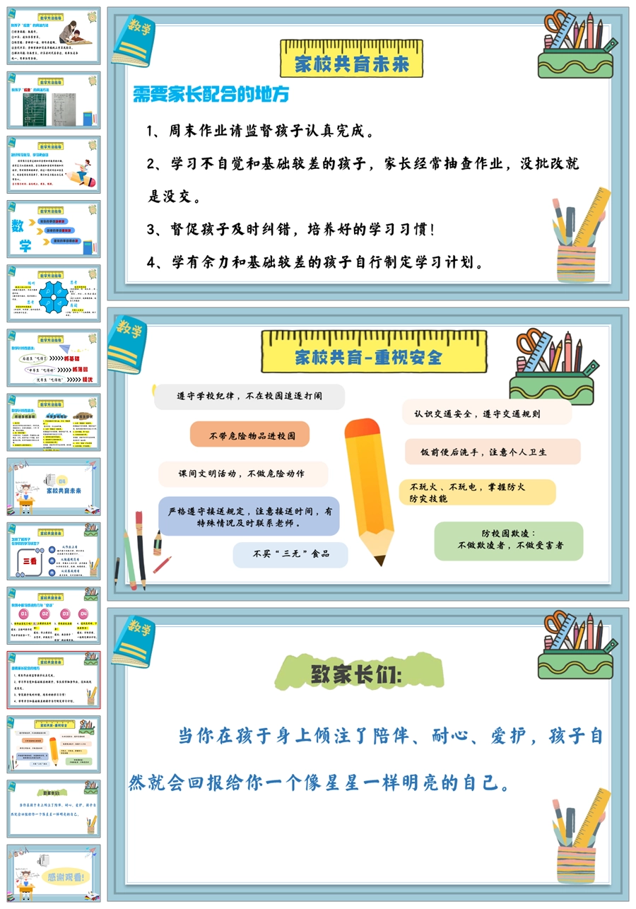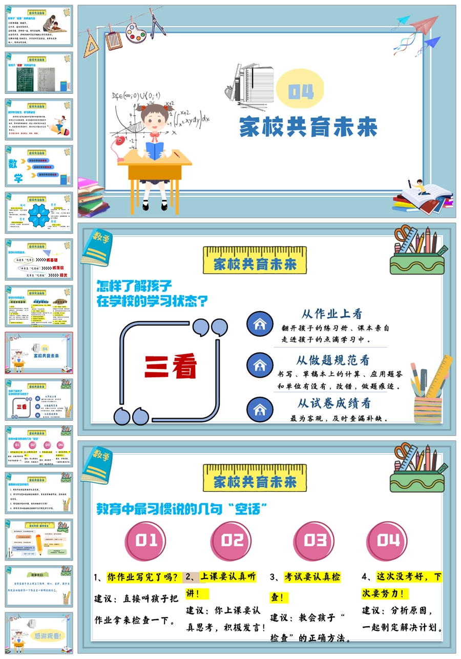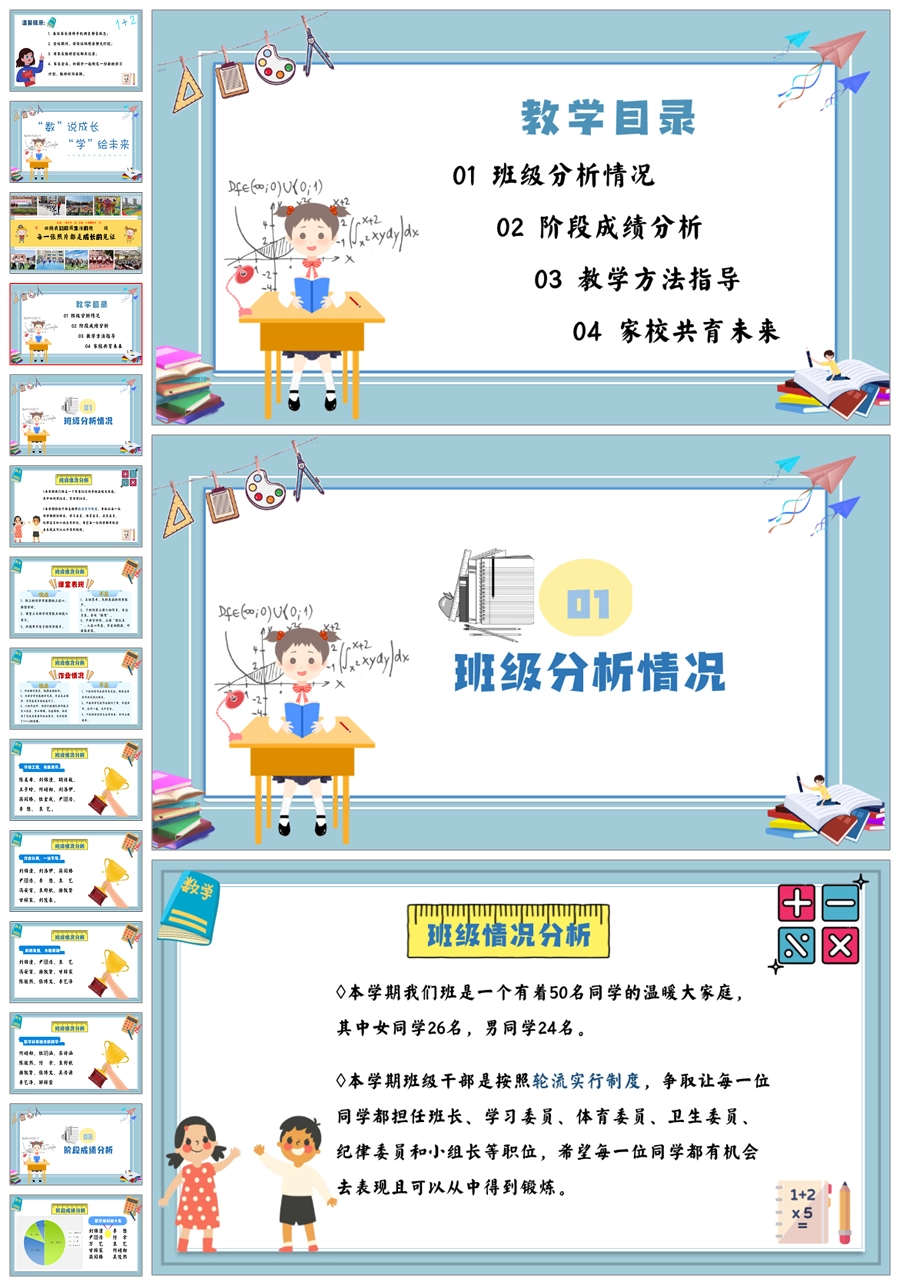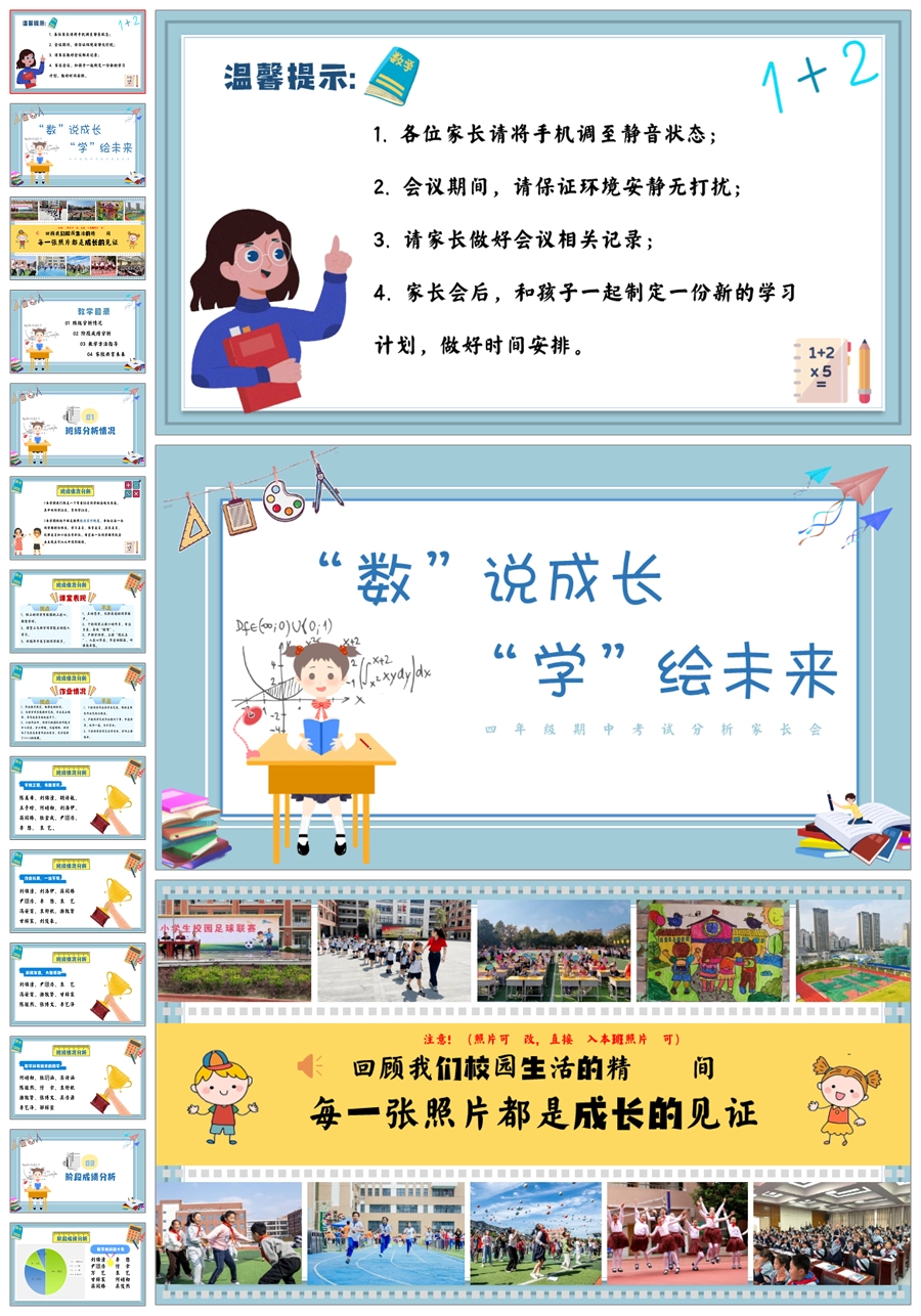 【5830】《数说成长,学绘未来》数学期中家长会ppt课件+发言稿