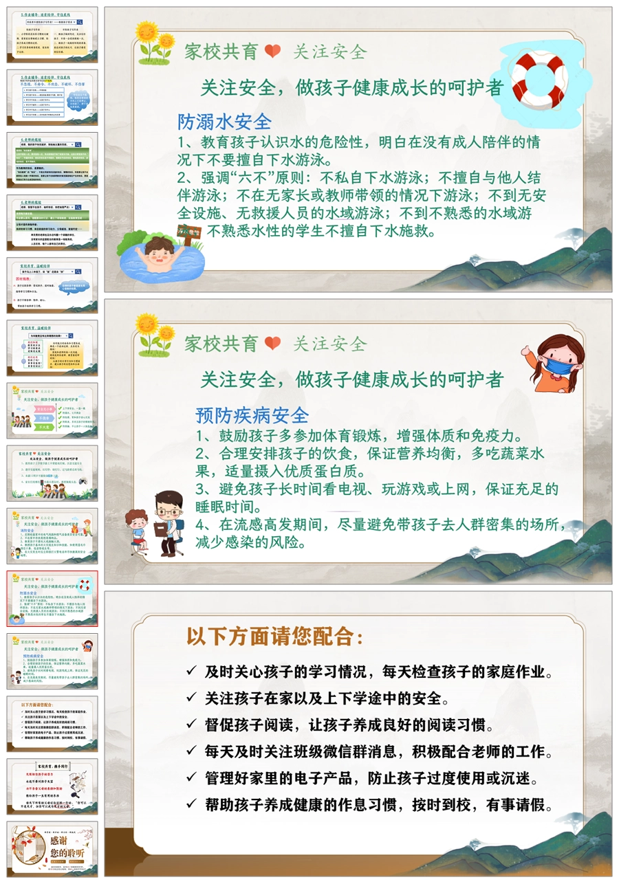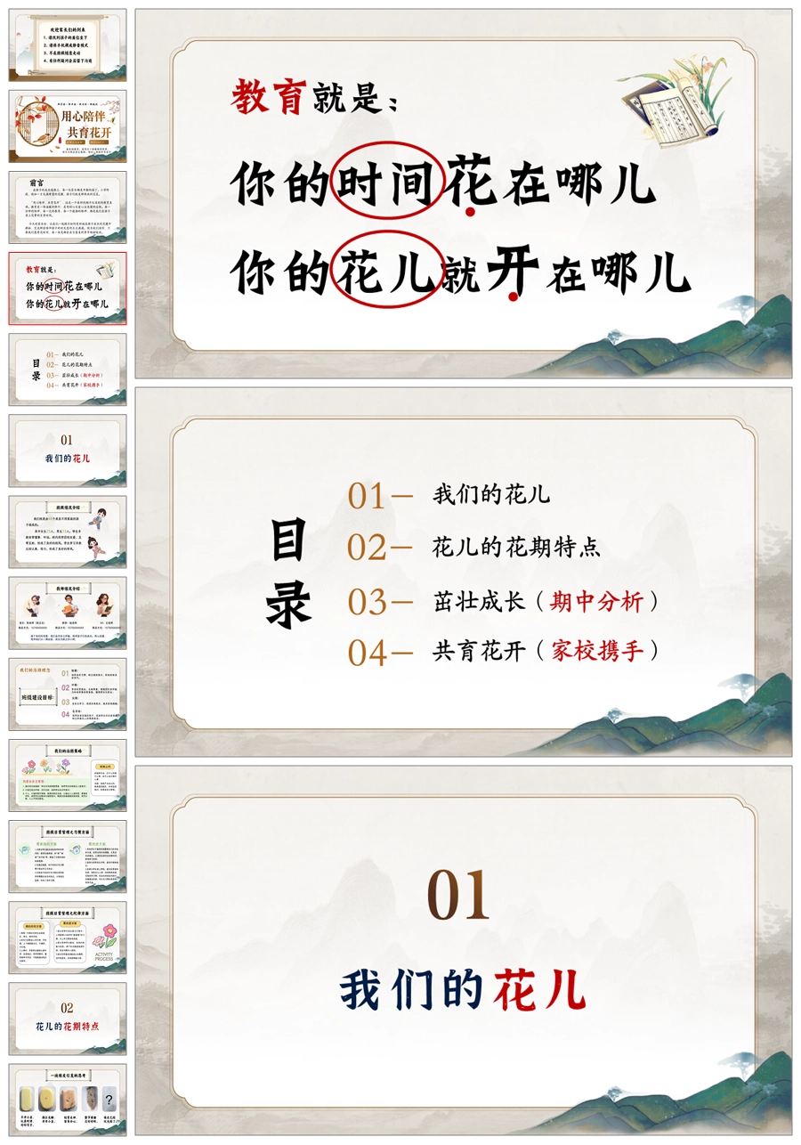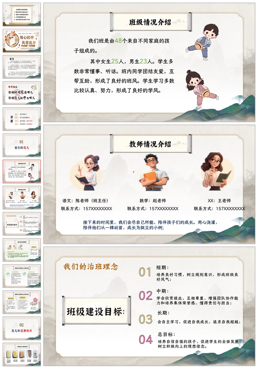 【5822】《用心陪伴,共育花开》中小学通用家长会ppt课件+发言稿