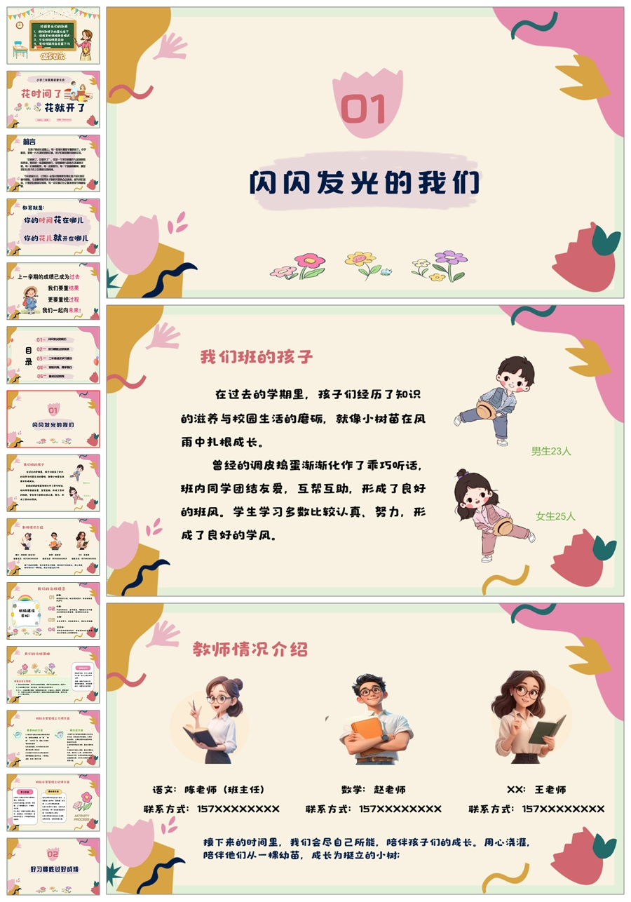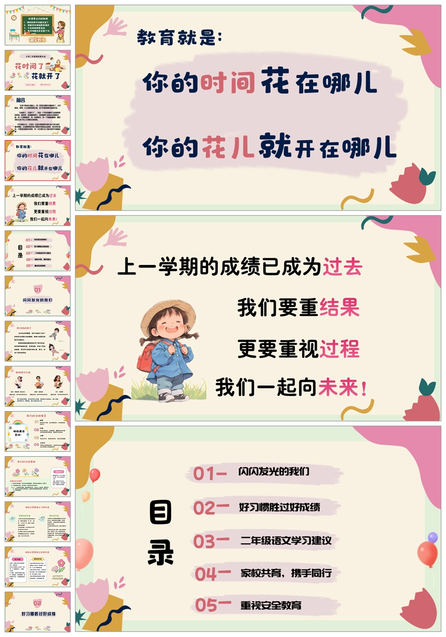 【5836】《花时间,花就开了》二年级家长会ppt课件+发言稿