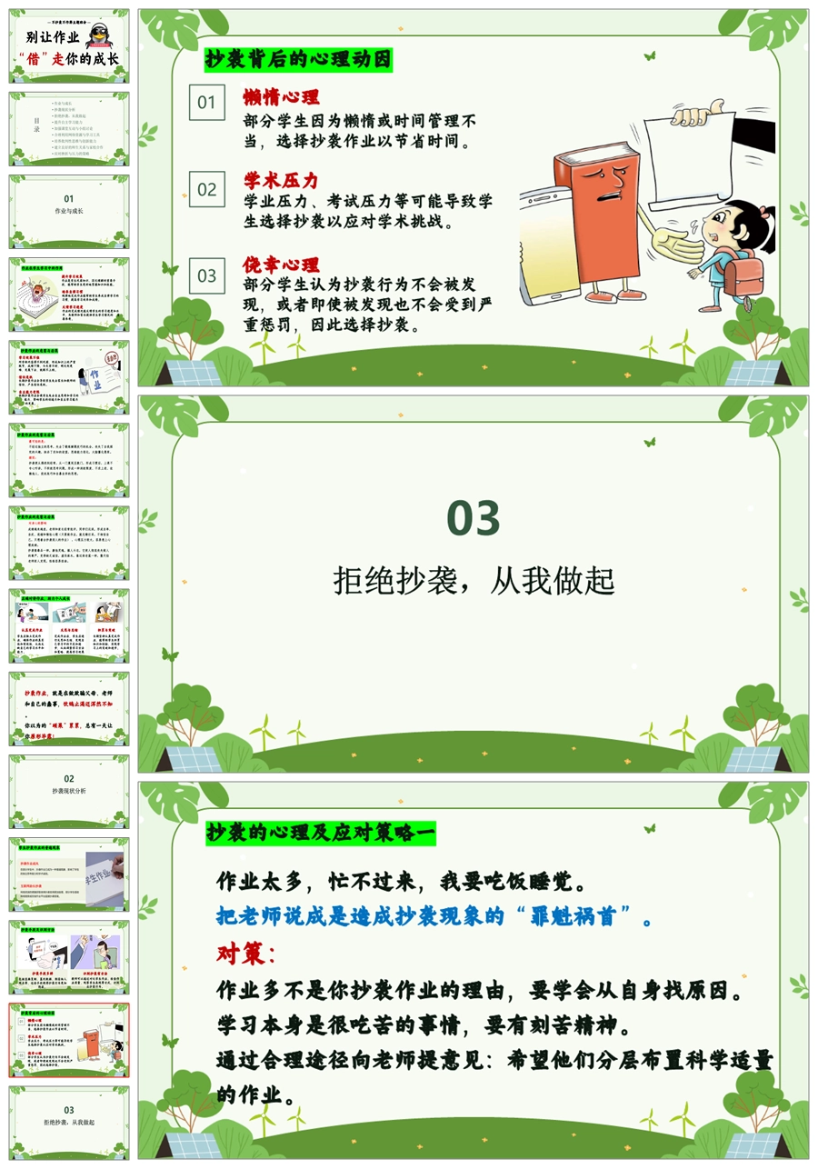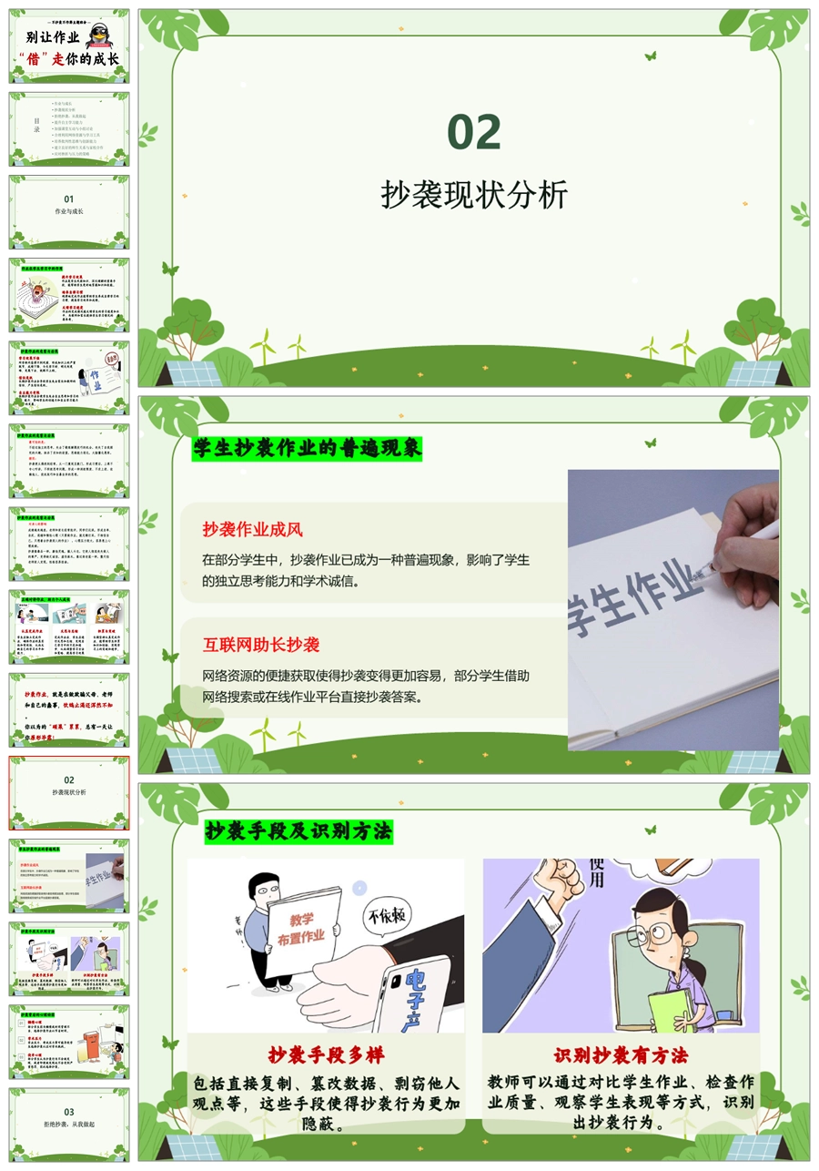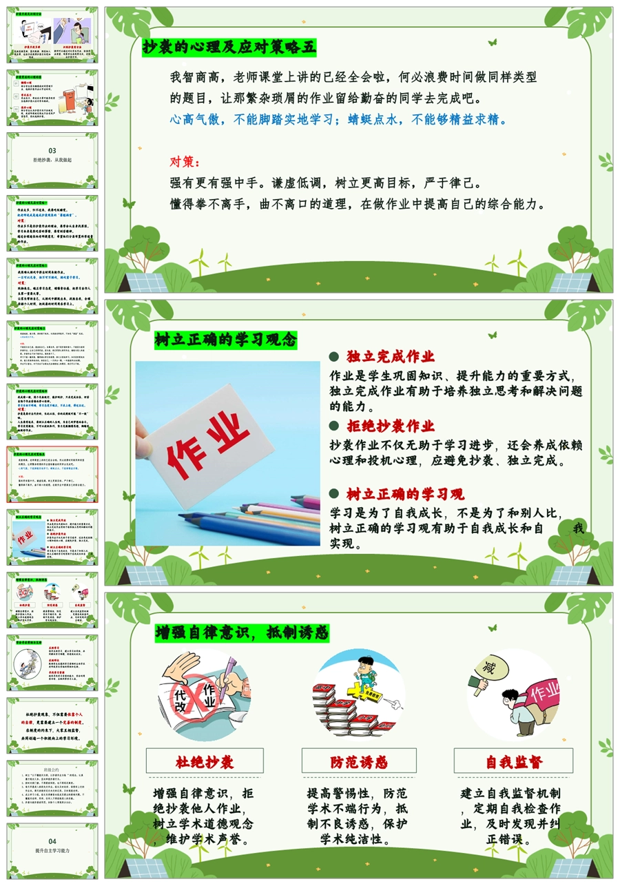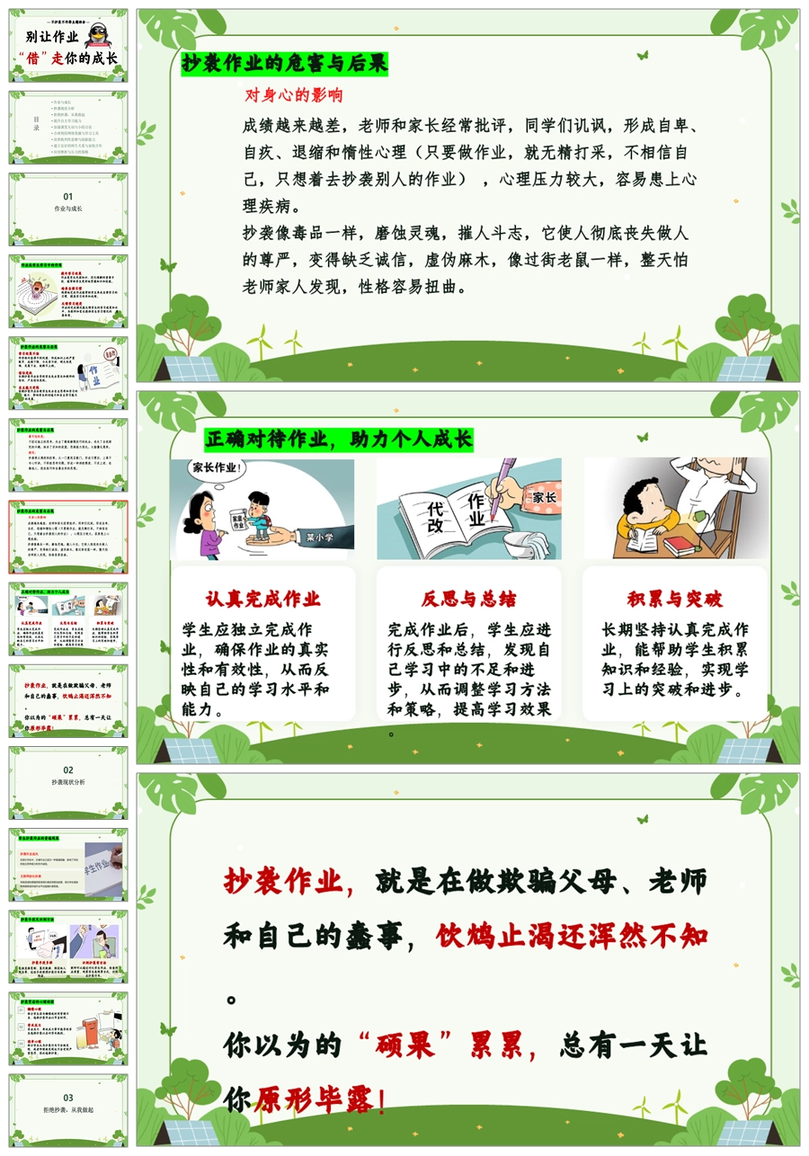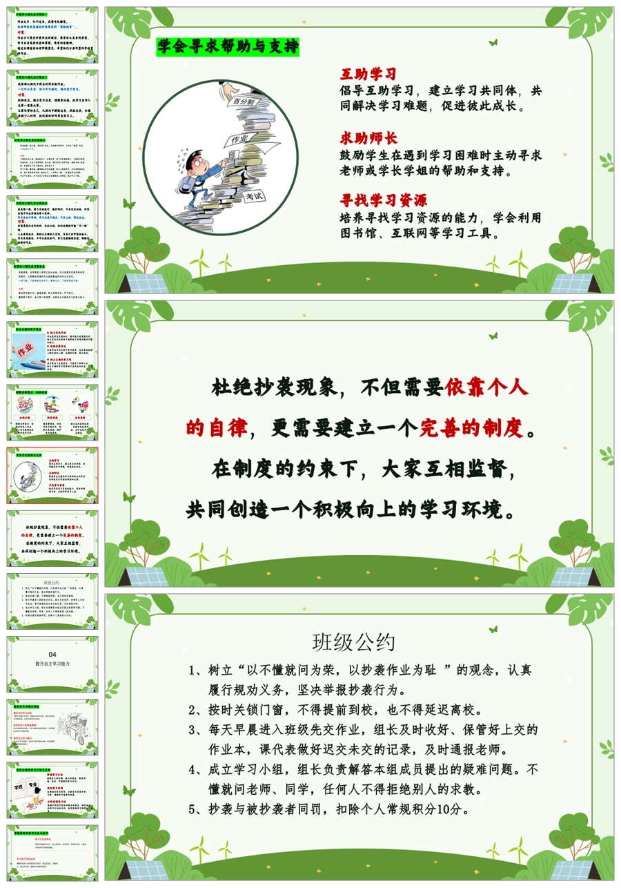 【5791】《别让作业“借”走你的成长》不抄袭不作弊主题班会ppt课件+逐字稿