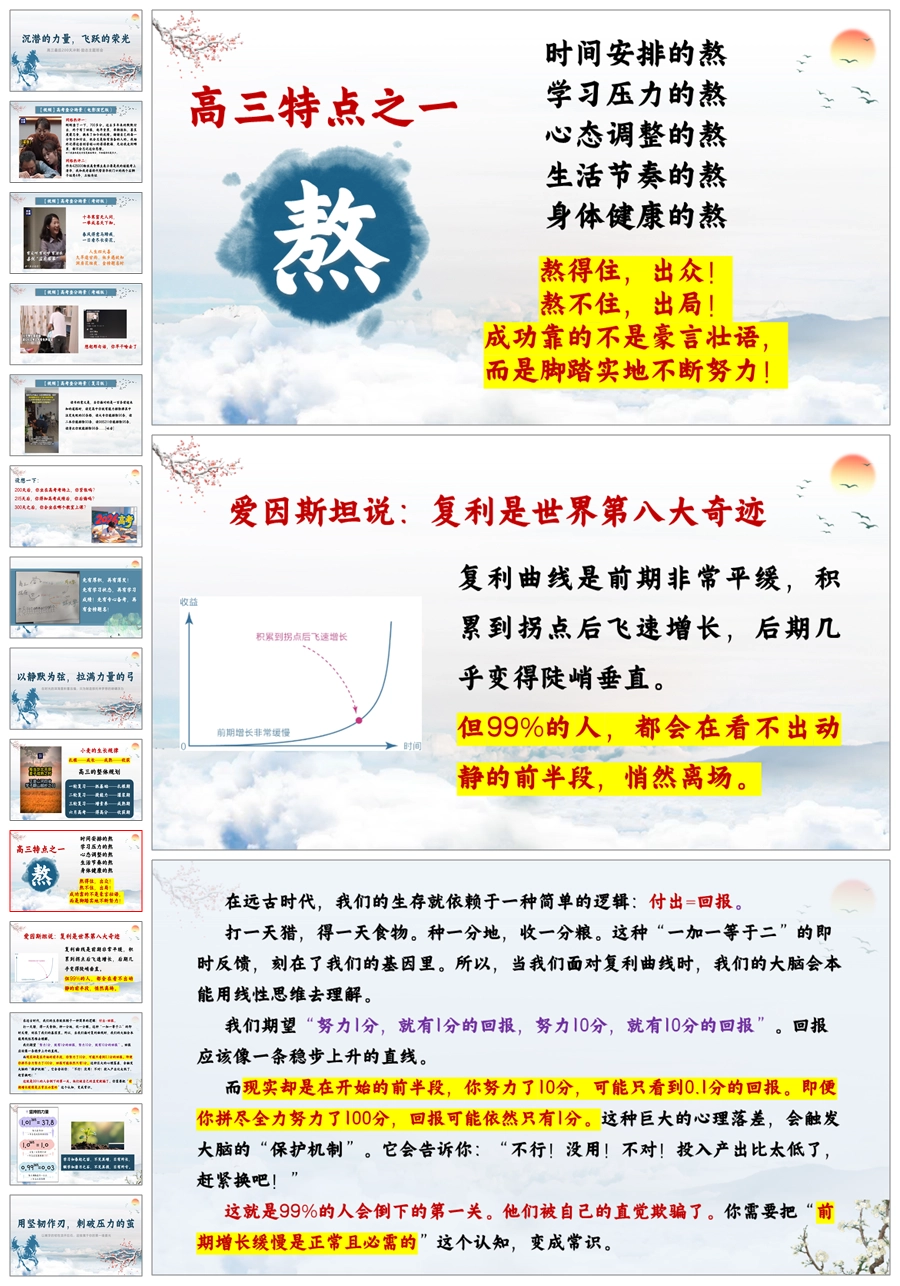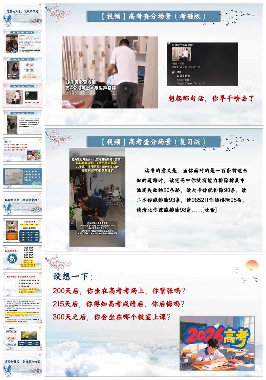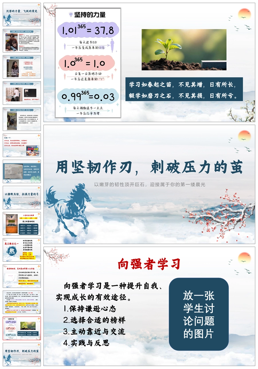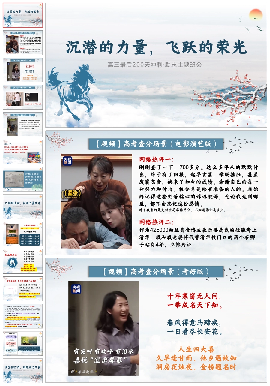 【5802】高三励志主题班会《沉潜的力量,飞跃的荣光》ppt课件+逐字稿