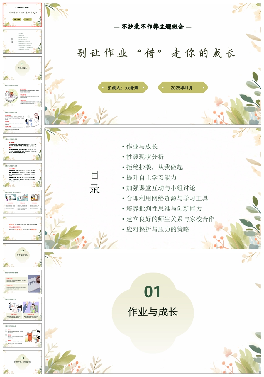 【5800】【通用】【拒绝抄袭】主题班会【别让作业“借”走你的成长】ppt课件+逐字稿