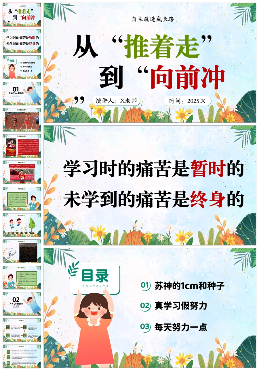 【5792】《从“推着走”到“向前冲”》自主学习励志主题班会ppt课件