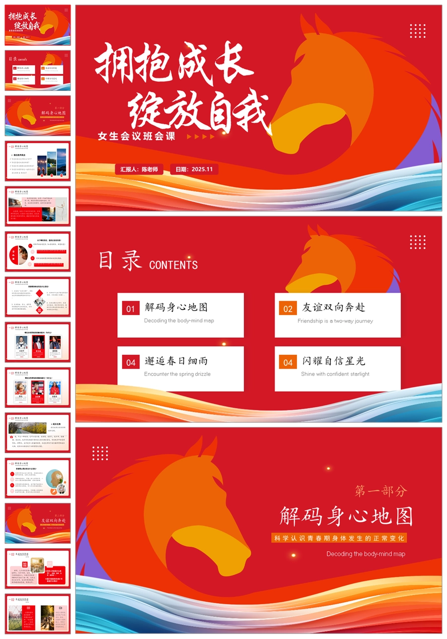 【5798】《拥抱成长 绽放自我》女生会议班会课ppt课件+视频