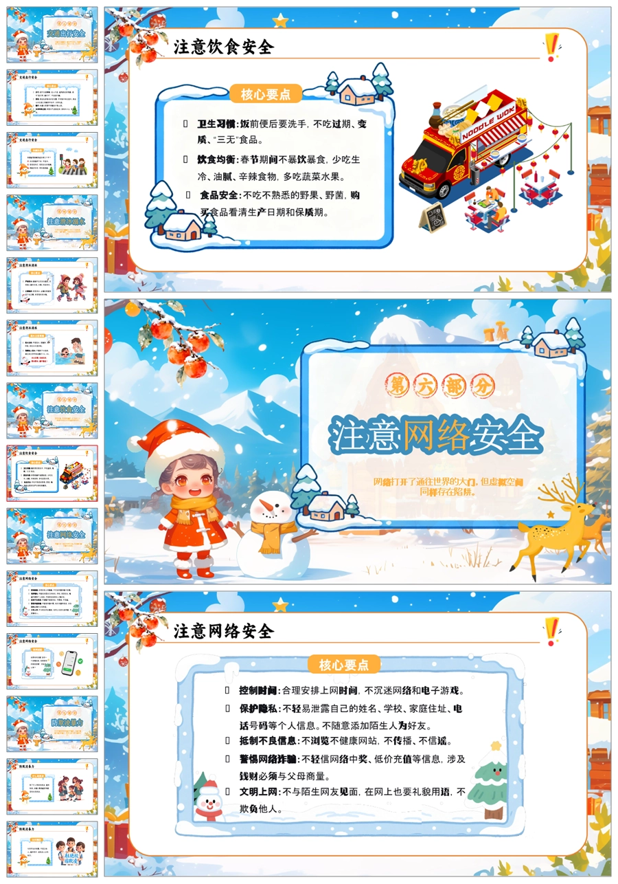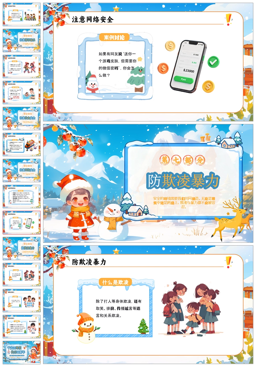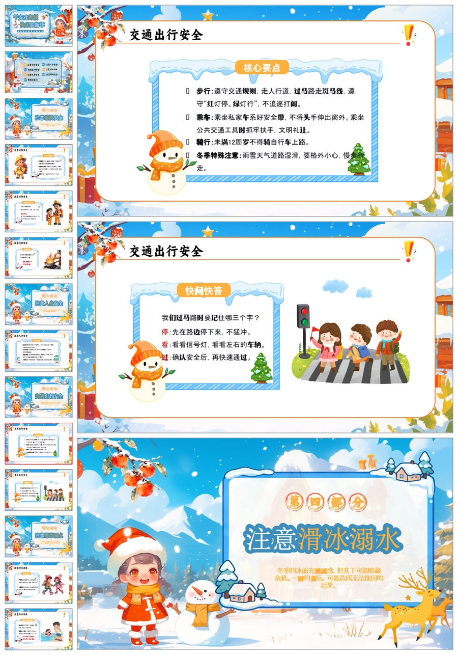 【5824】《平安过寒假》寒假安全教育主题班会PPT课件+教案+逐字稿