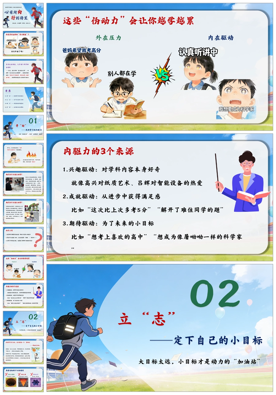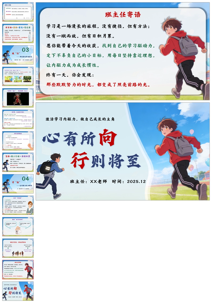 【5829】激发内驱力主题班会《心有所向,行则将至》PPT课件+教案+发言稿
