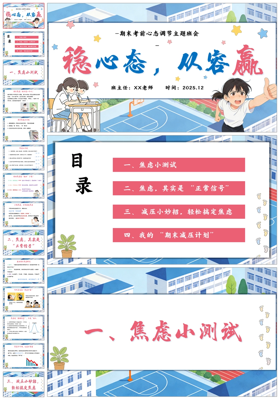 【5833】期末考前心态调节主题班会《稳心态,从容赢》PPT课件+教案+发言稿