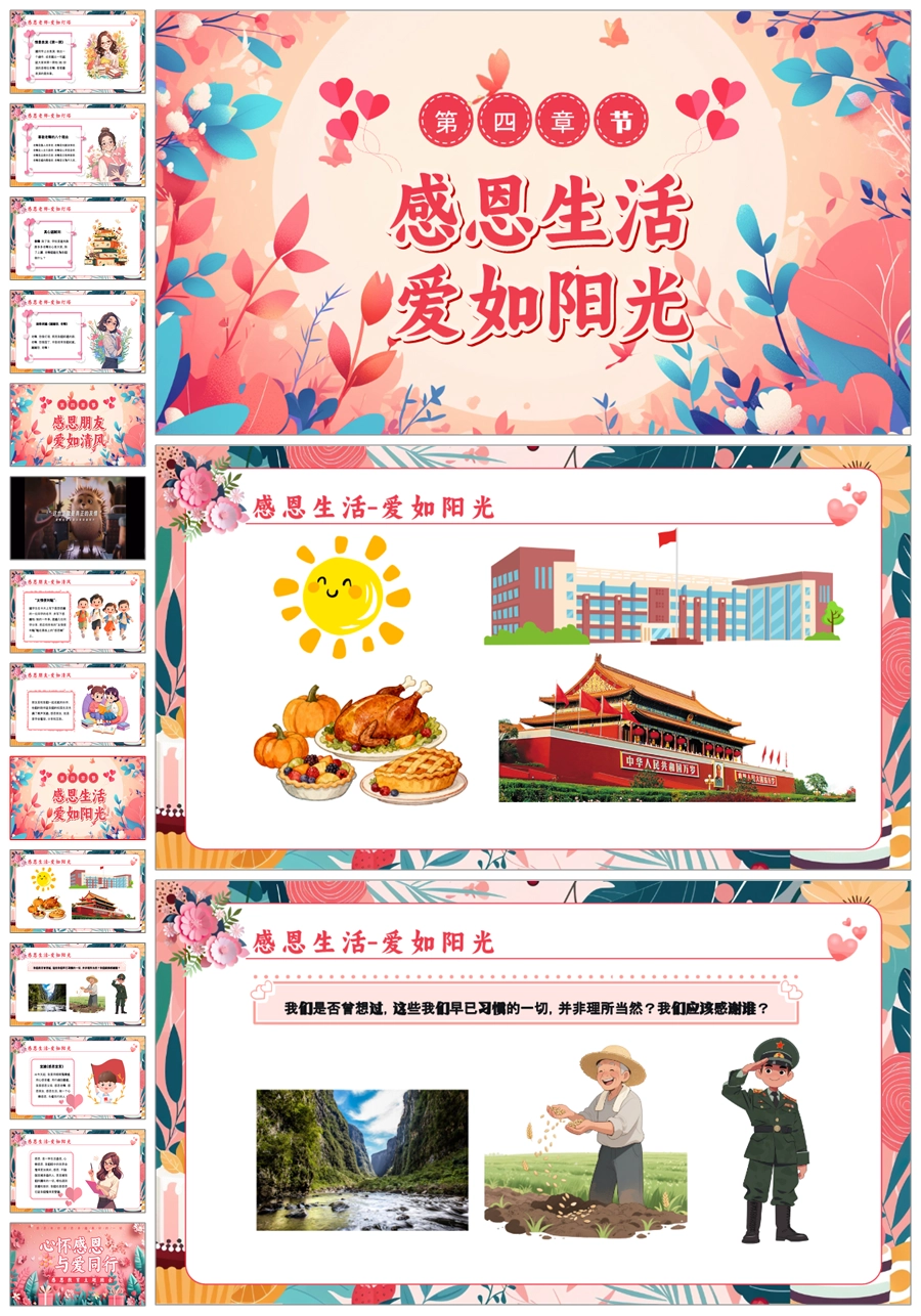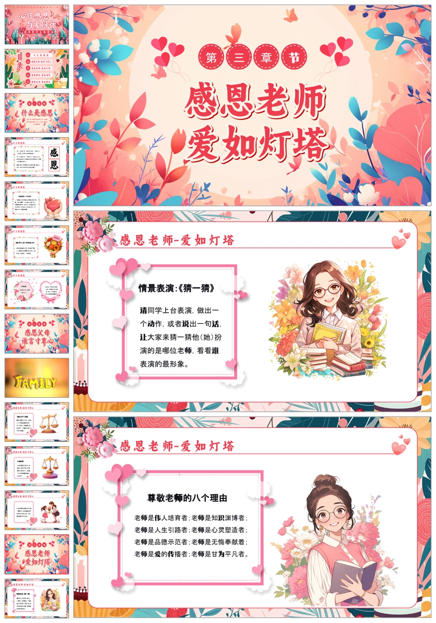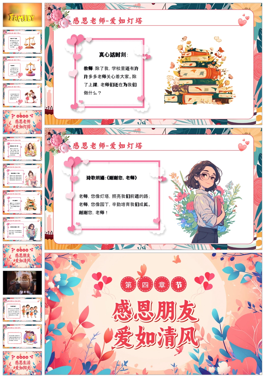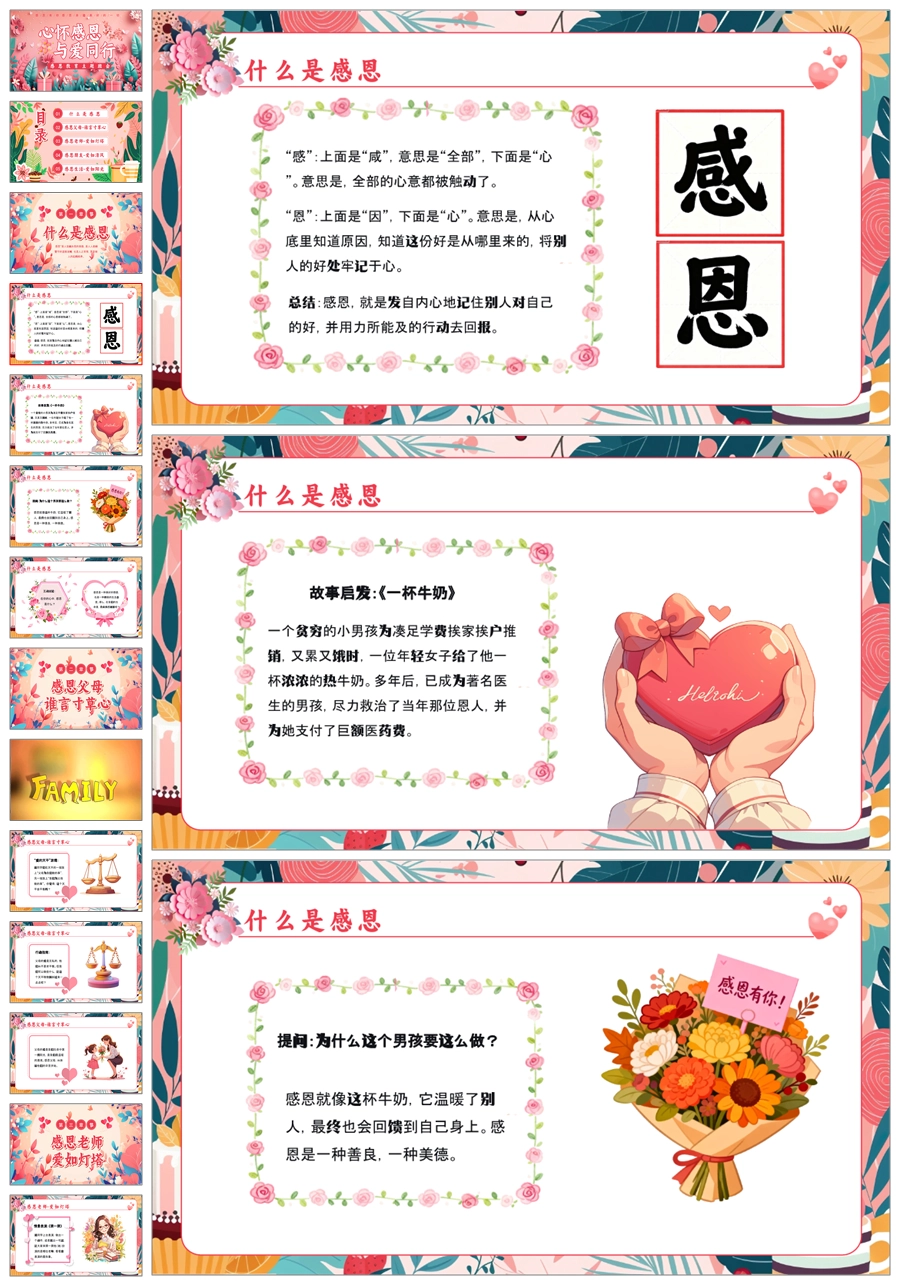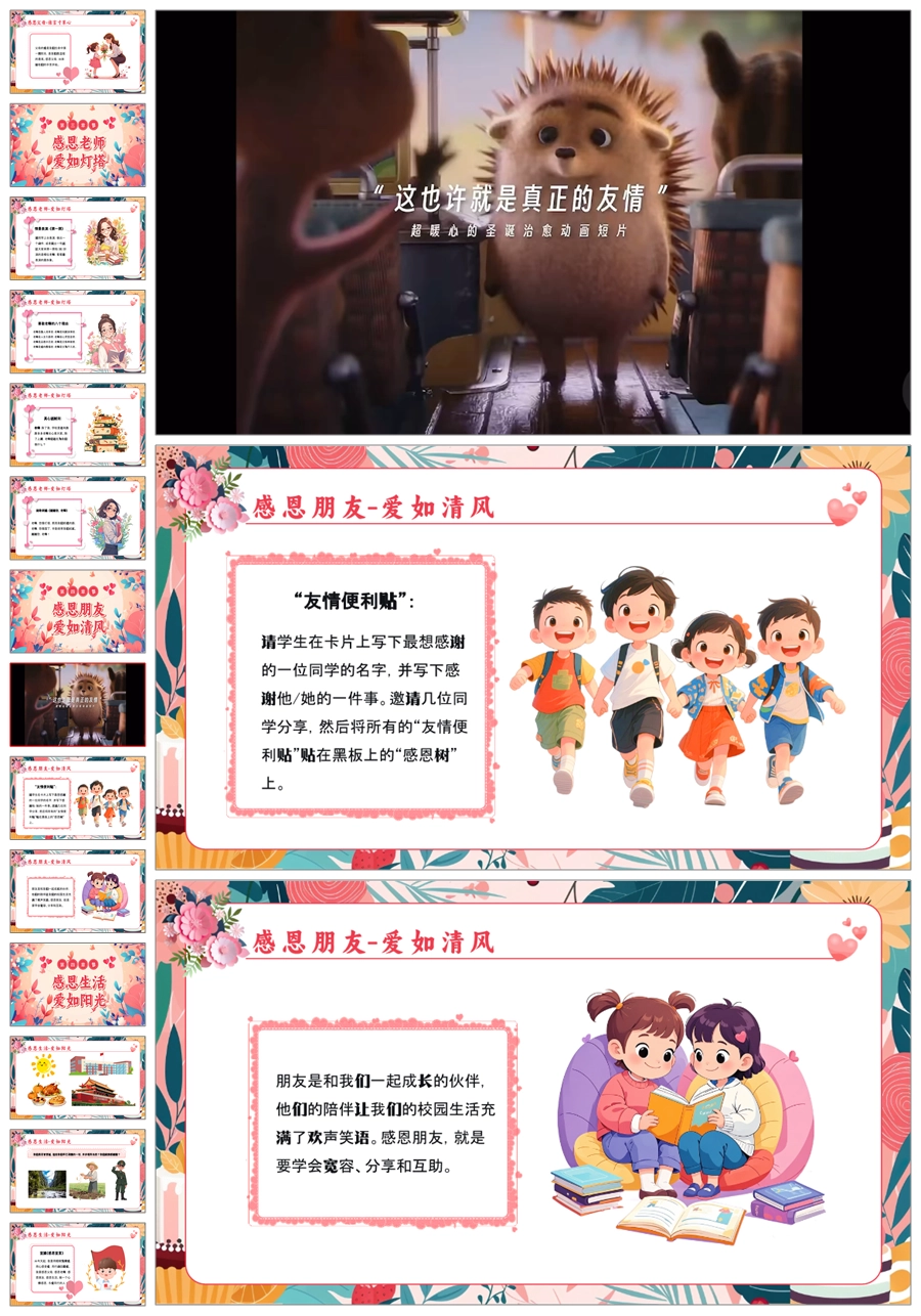 【5837】小学生《心怀感恩,与爱同行》主题班会PPT课件+教案+逐字稿+视频