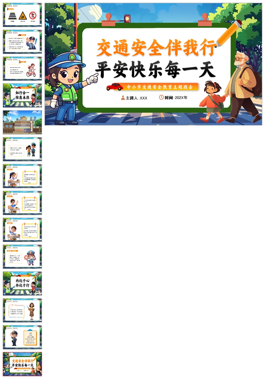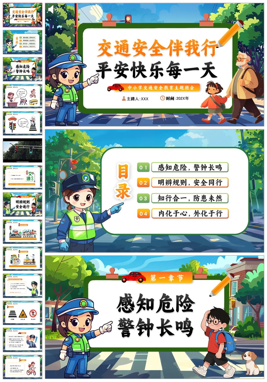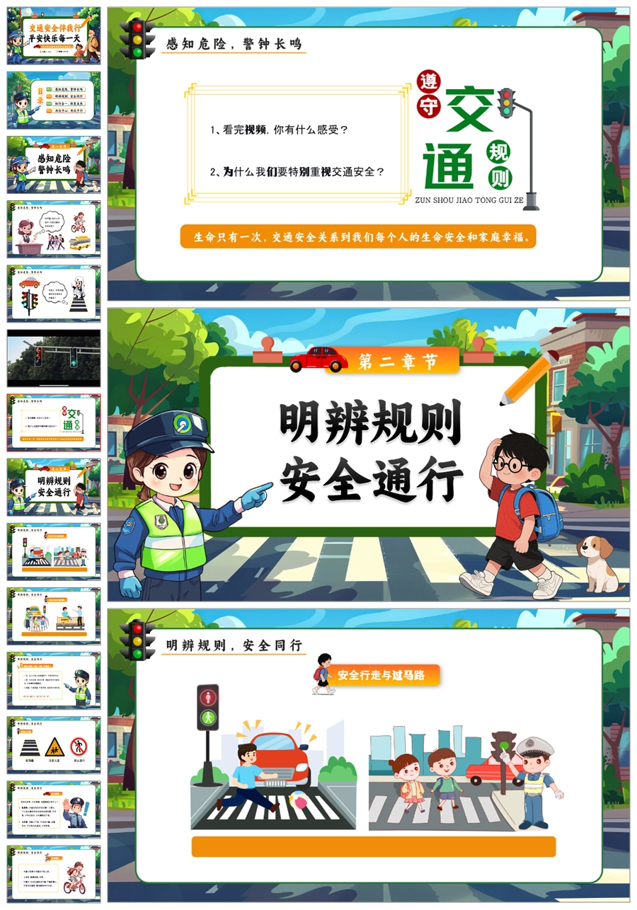 【5838】中小学《交通安全伴我行》主题班会PPT课件+教案+逐字稿+视频