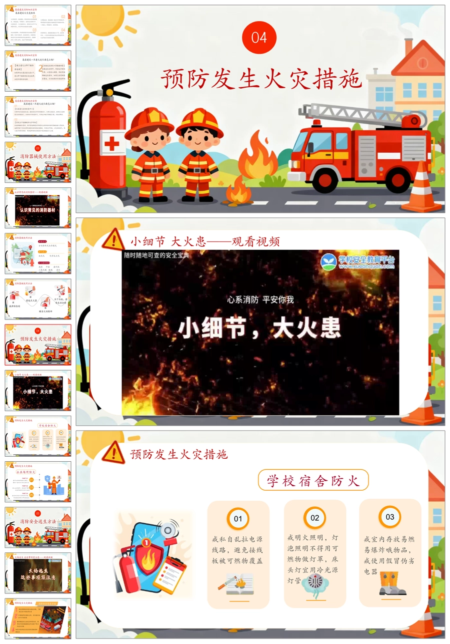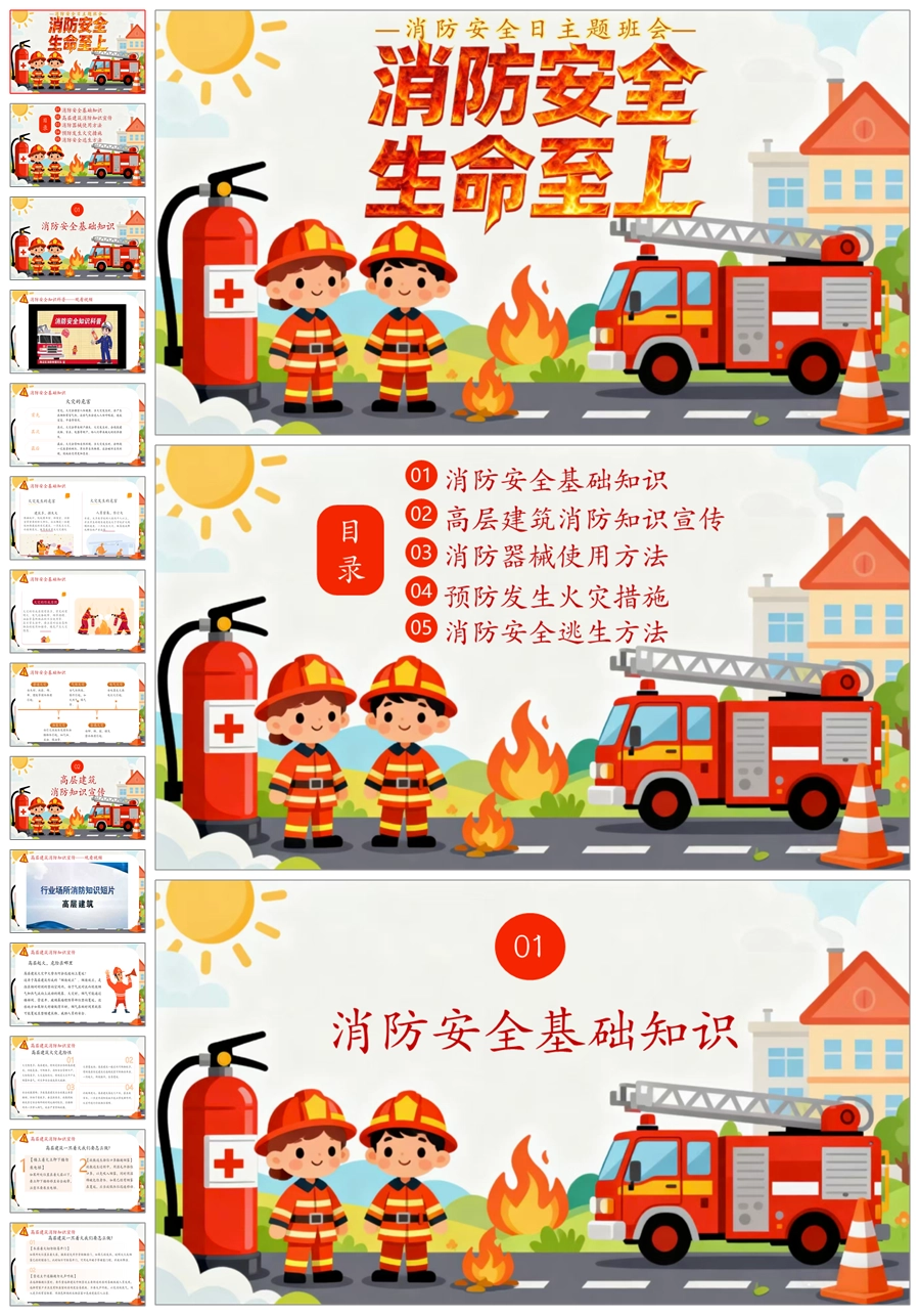 【5843】《消防安全 生命至上》全国安全消防日主题班会ppt课件+发言稿+教案+视频