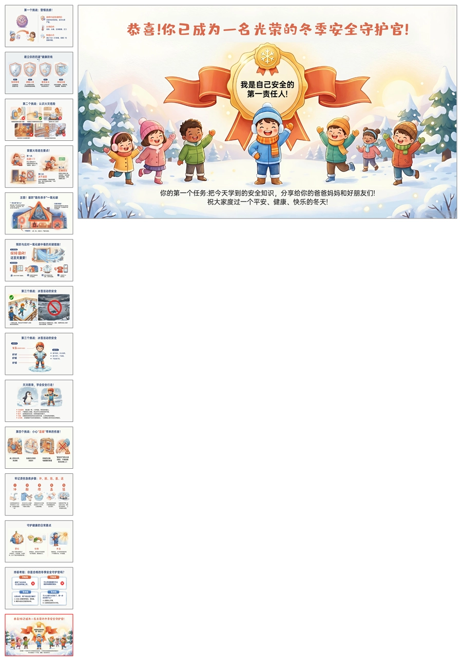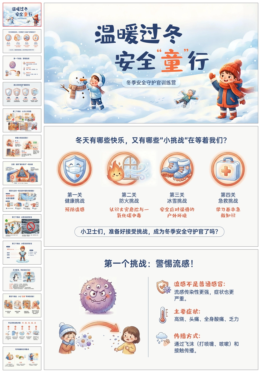 【5844】《温暖过冬,安全“童”行》小学寒假安全教育ppt课件+教案+发言稿