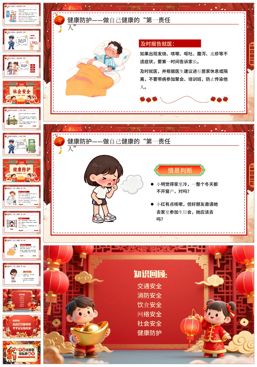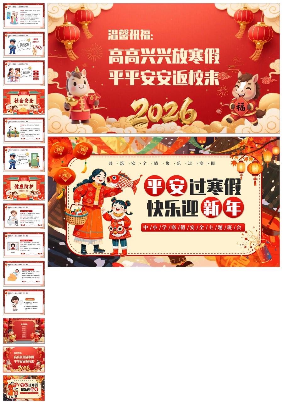 【5889】中学小学寒假安全教育主题班会PPT课件+文字稿