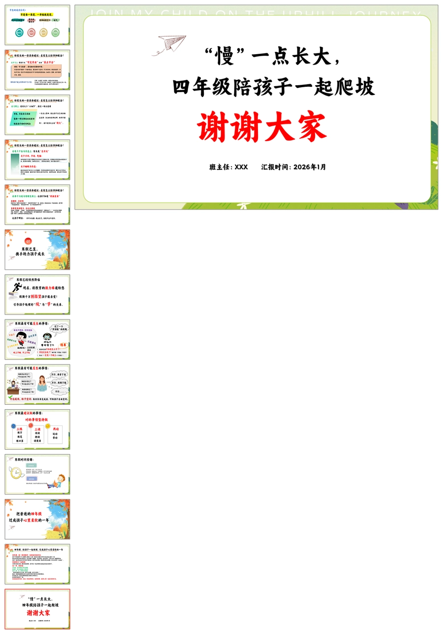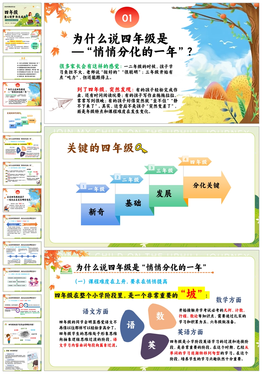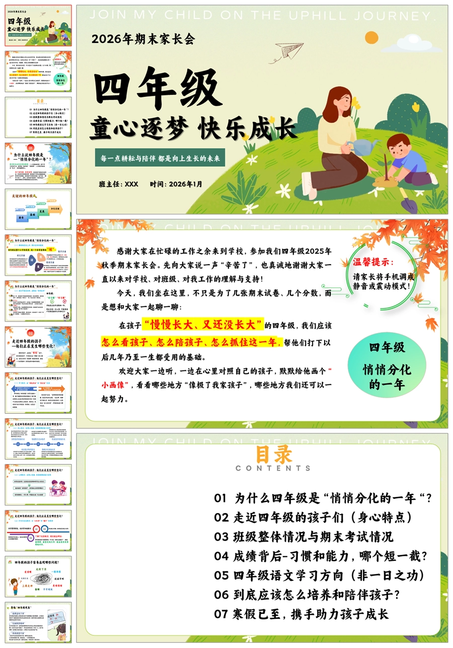 【8627】【四年级期末家长会】《童心逐梦快乐成长》ppt课件+发言稿