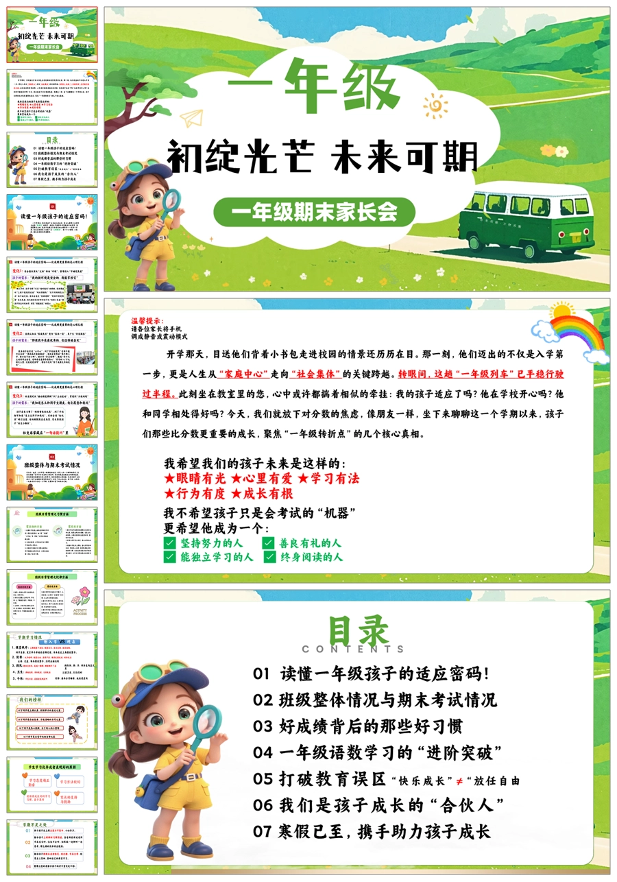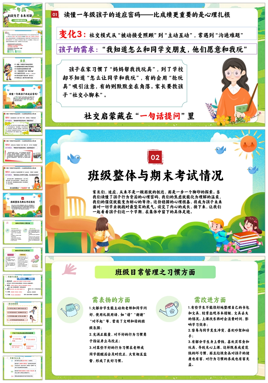 【8630】【一年级期末家长会】《初绽光芒未来可期》ppt课件+发言稿