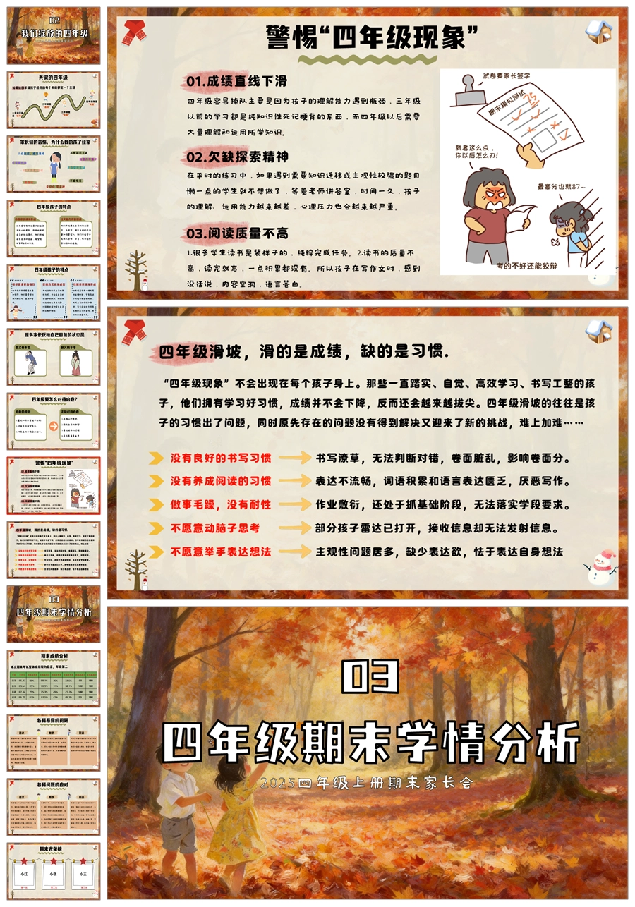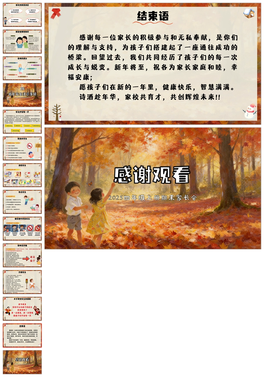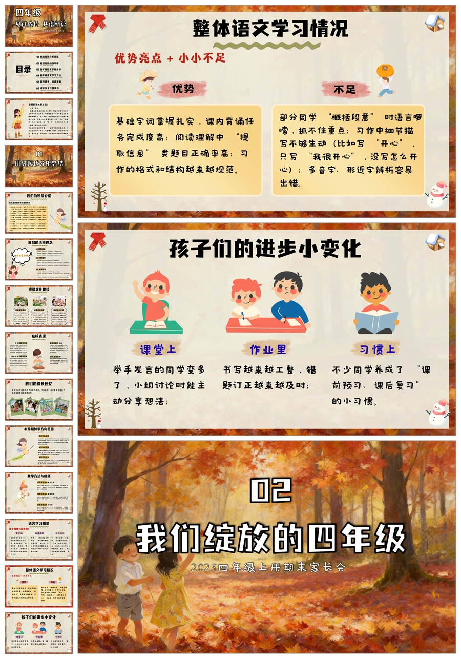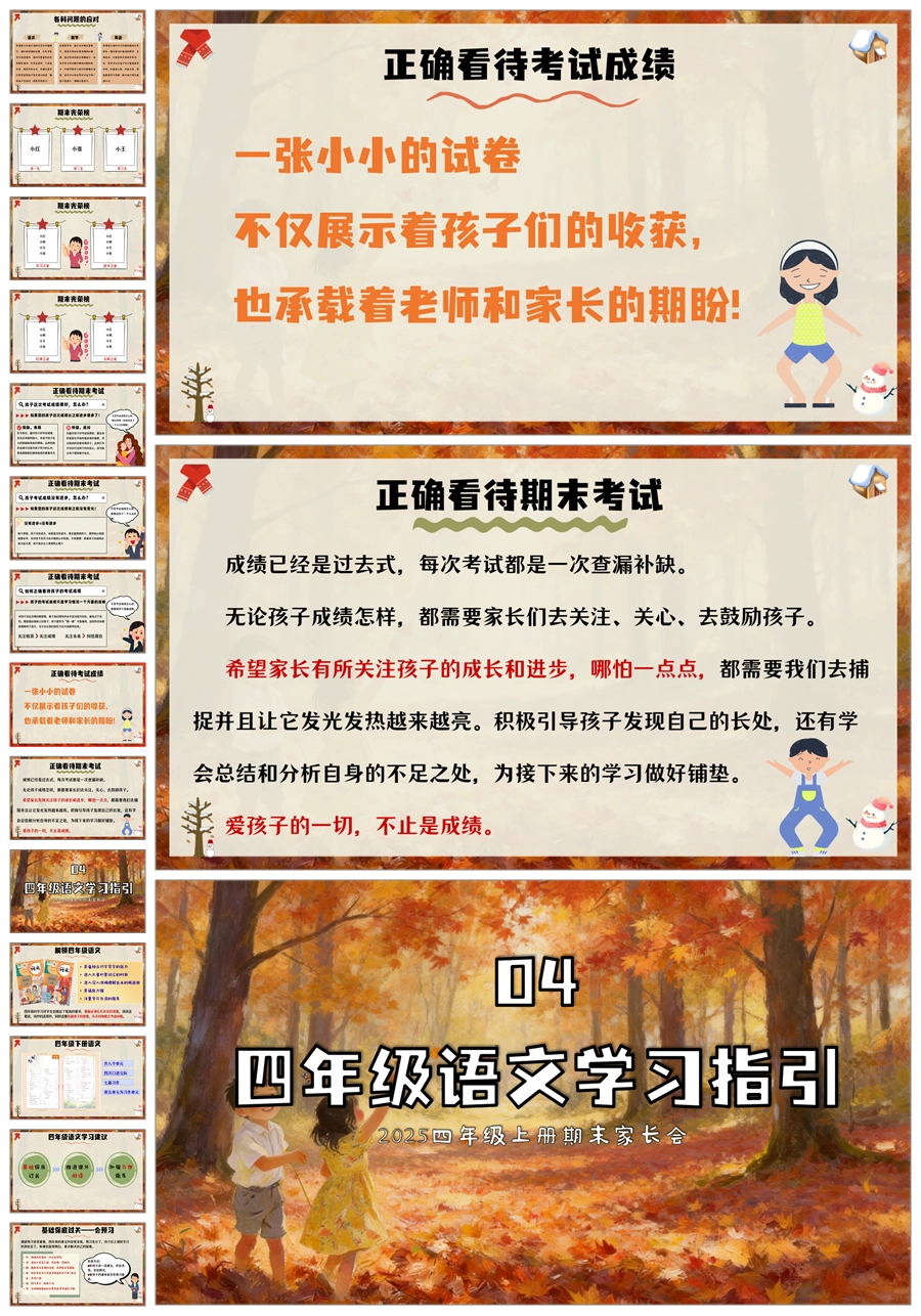 【8633】四上期末家长会《见证成长共谱新篇》四年级上学期期末家长会ppt课件+发言稿