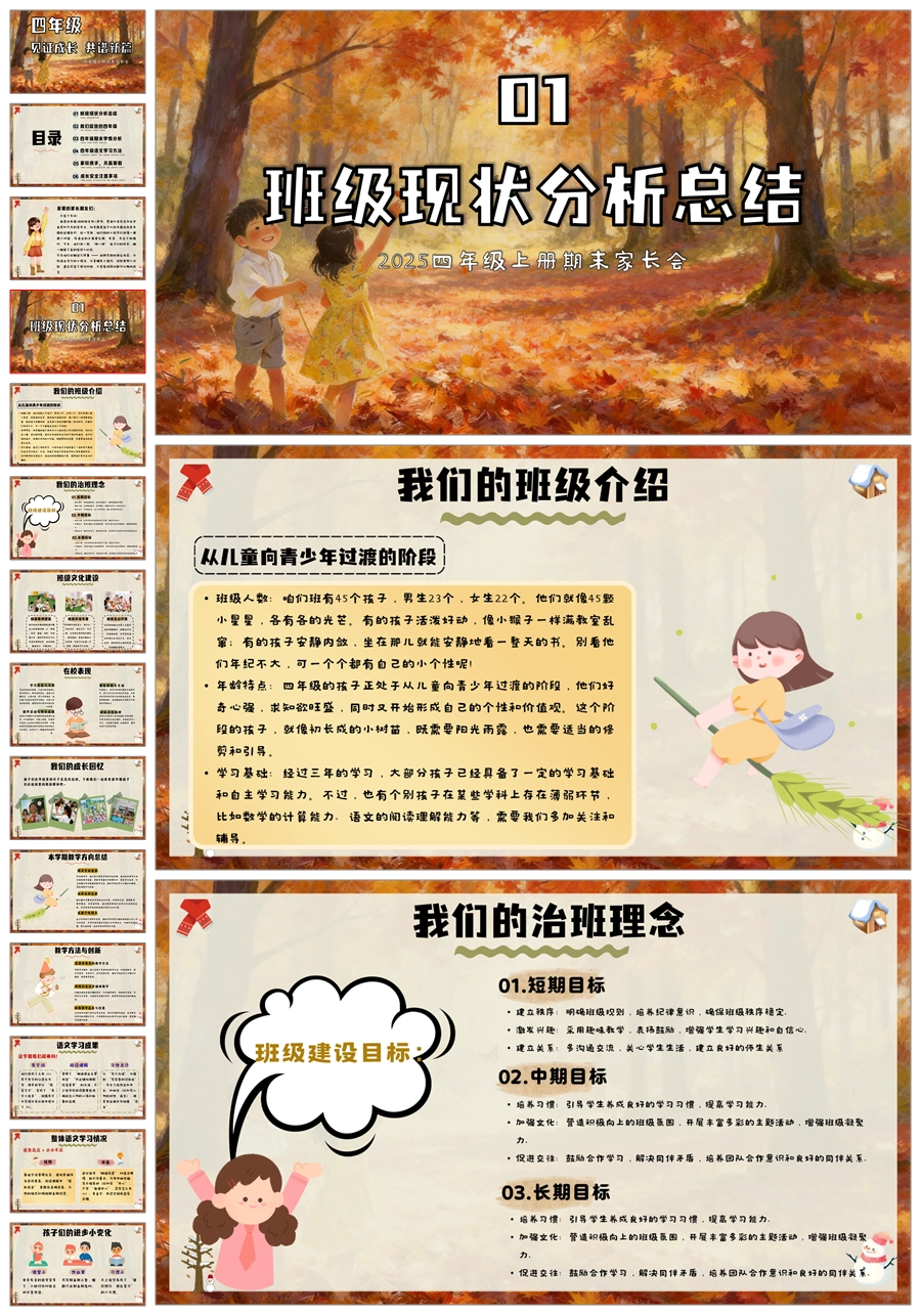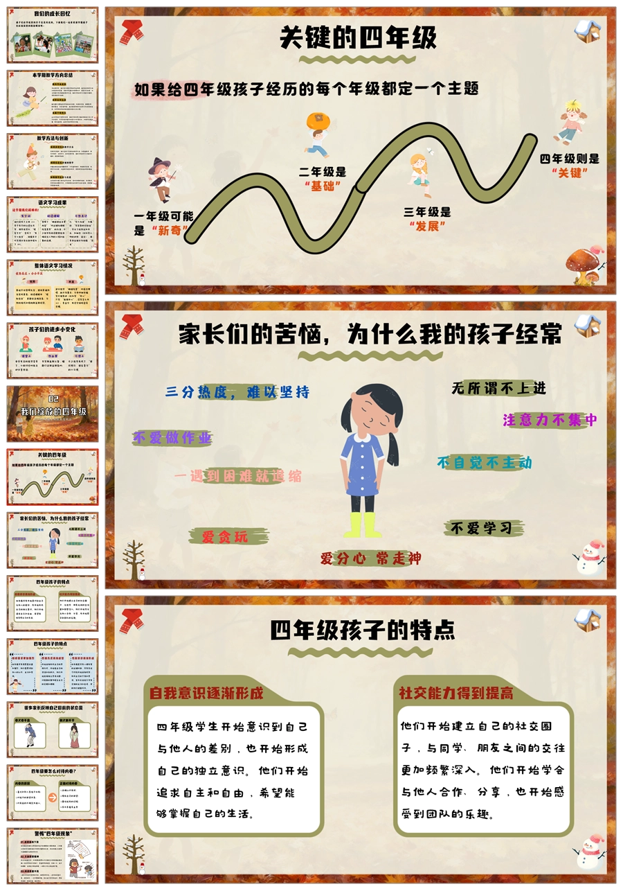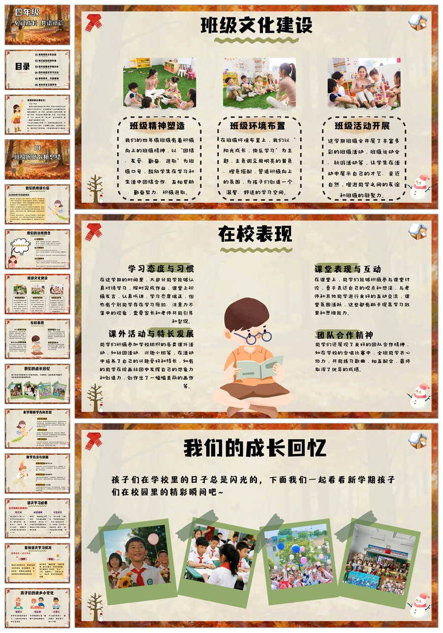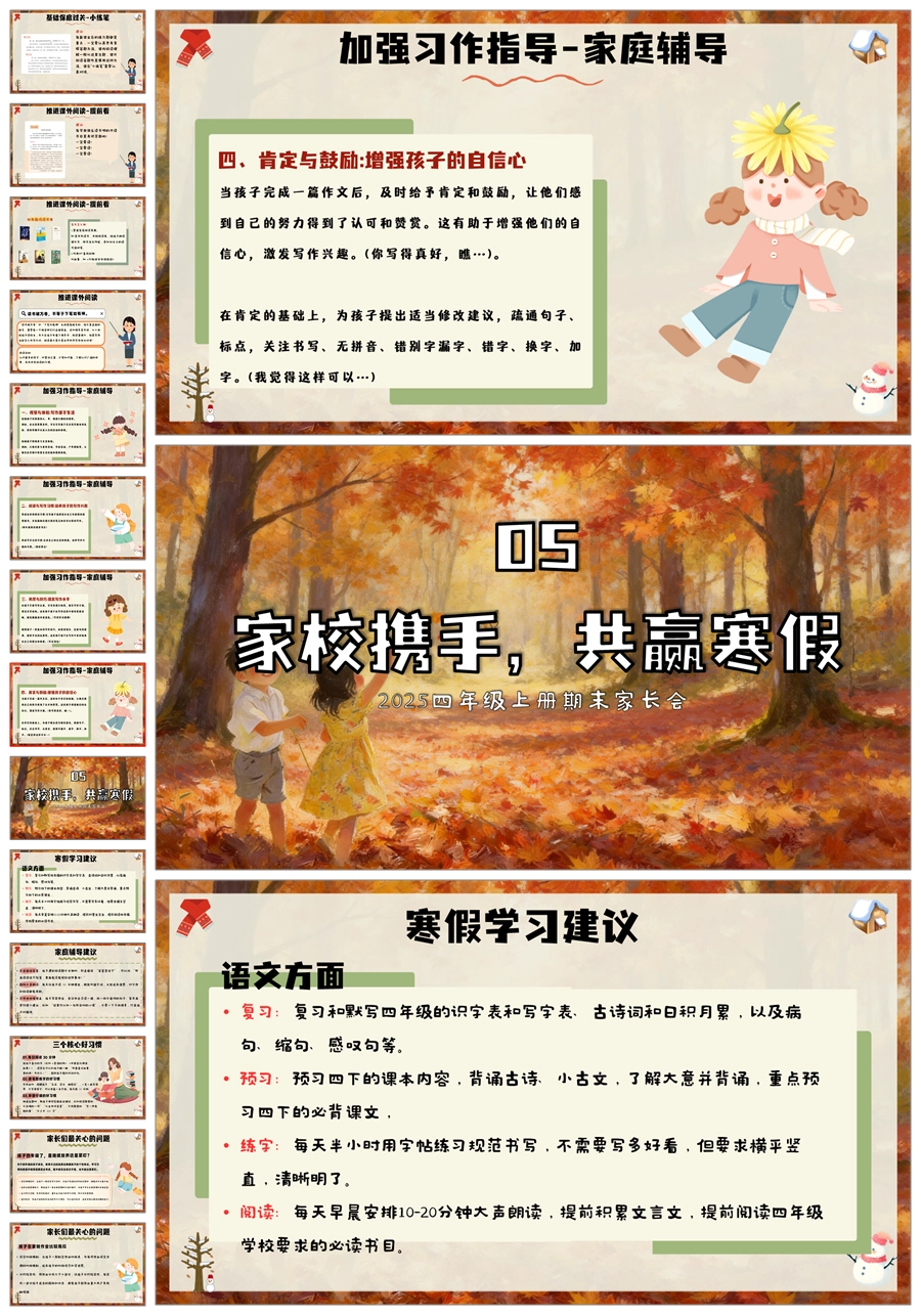 【8633】四上期末家长会《见证成长共谱新篇》四年级上学期期末家长会ppt课件+发言稿