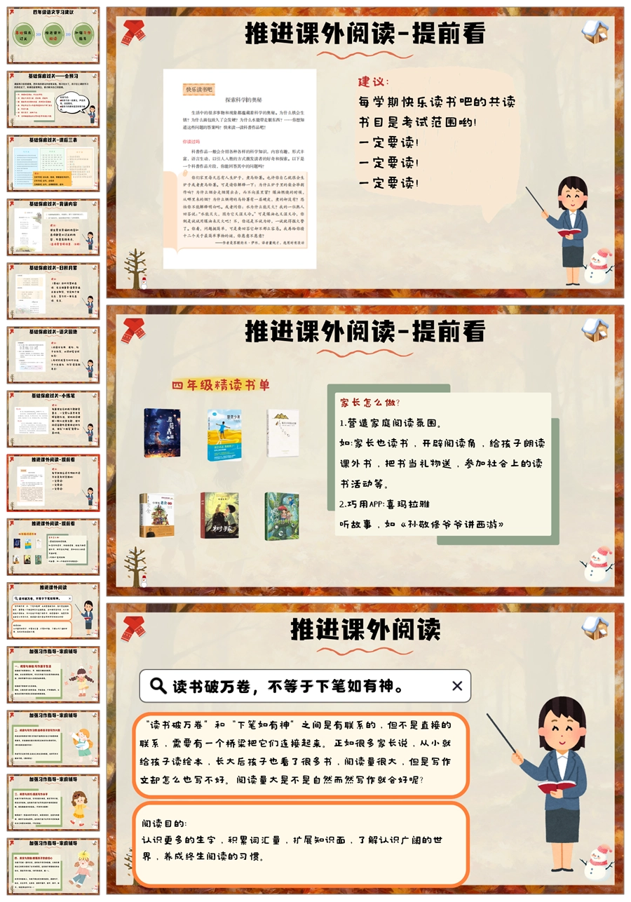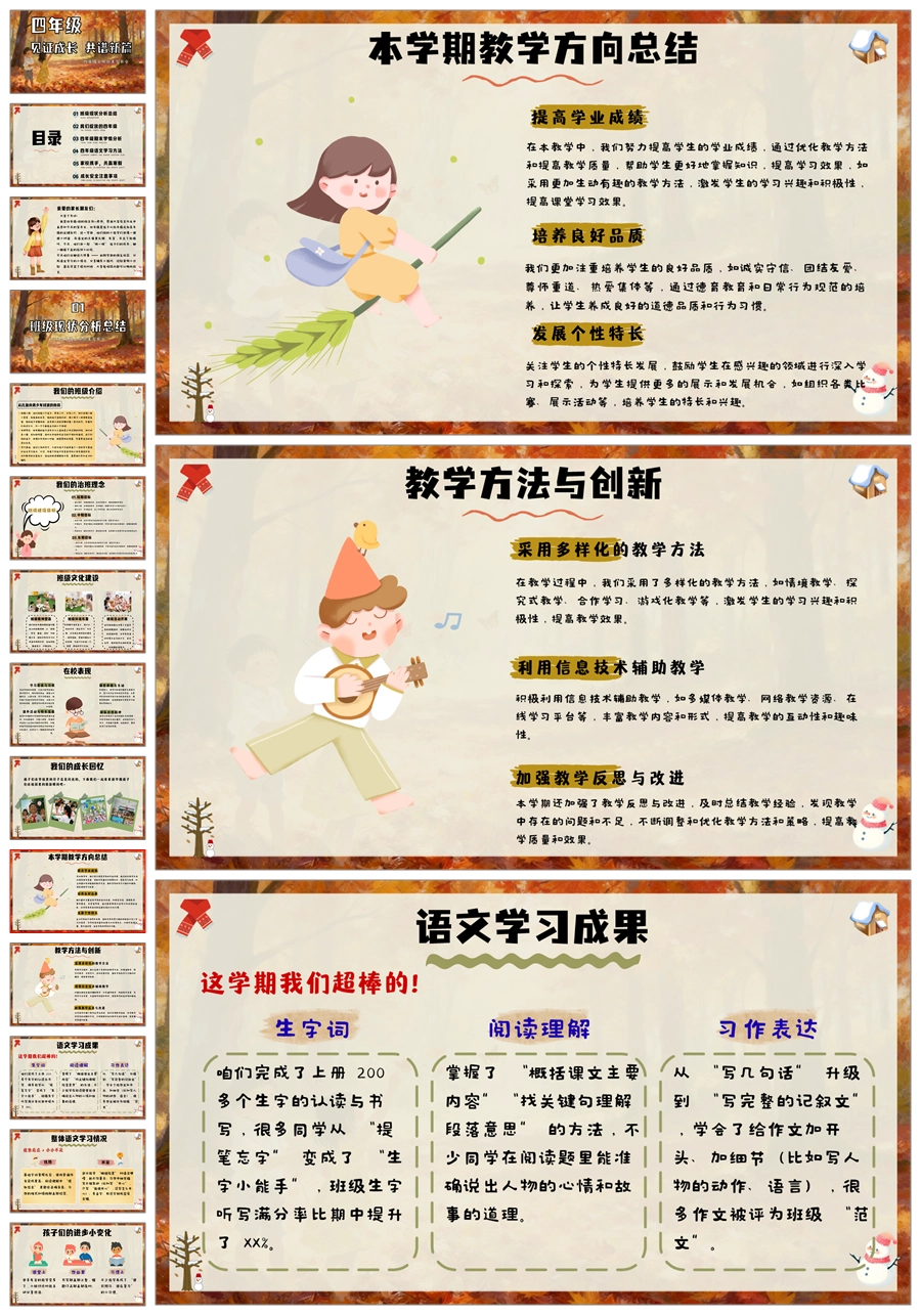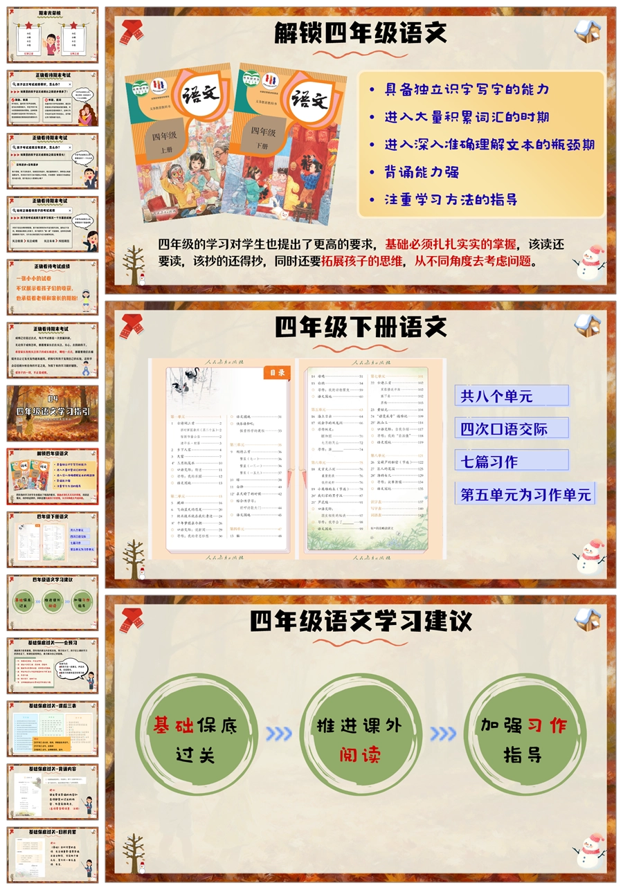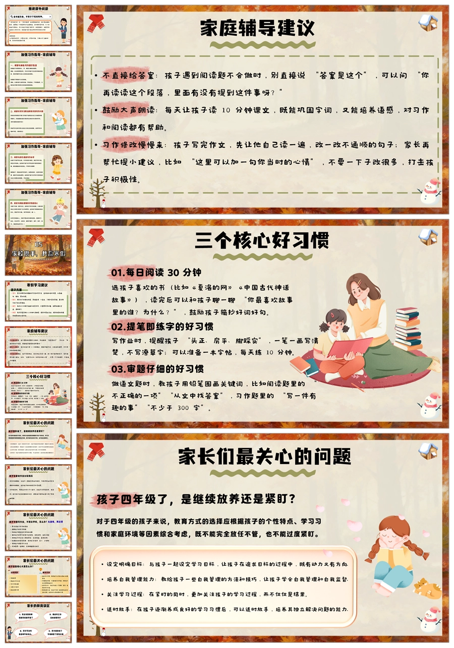 【8633】四上期末家长会《见证成长共谱新篇》四年级上学期期末家长会ppt课件+发言稿