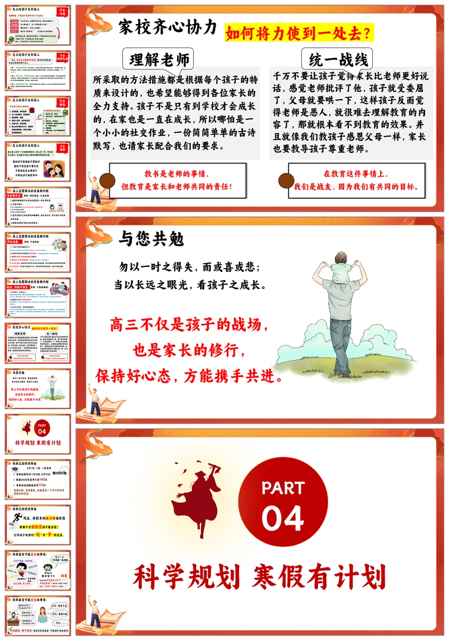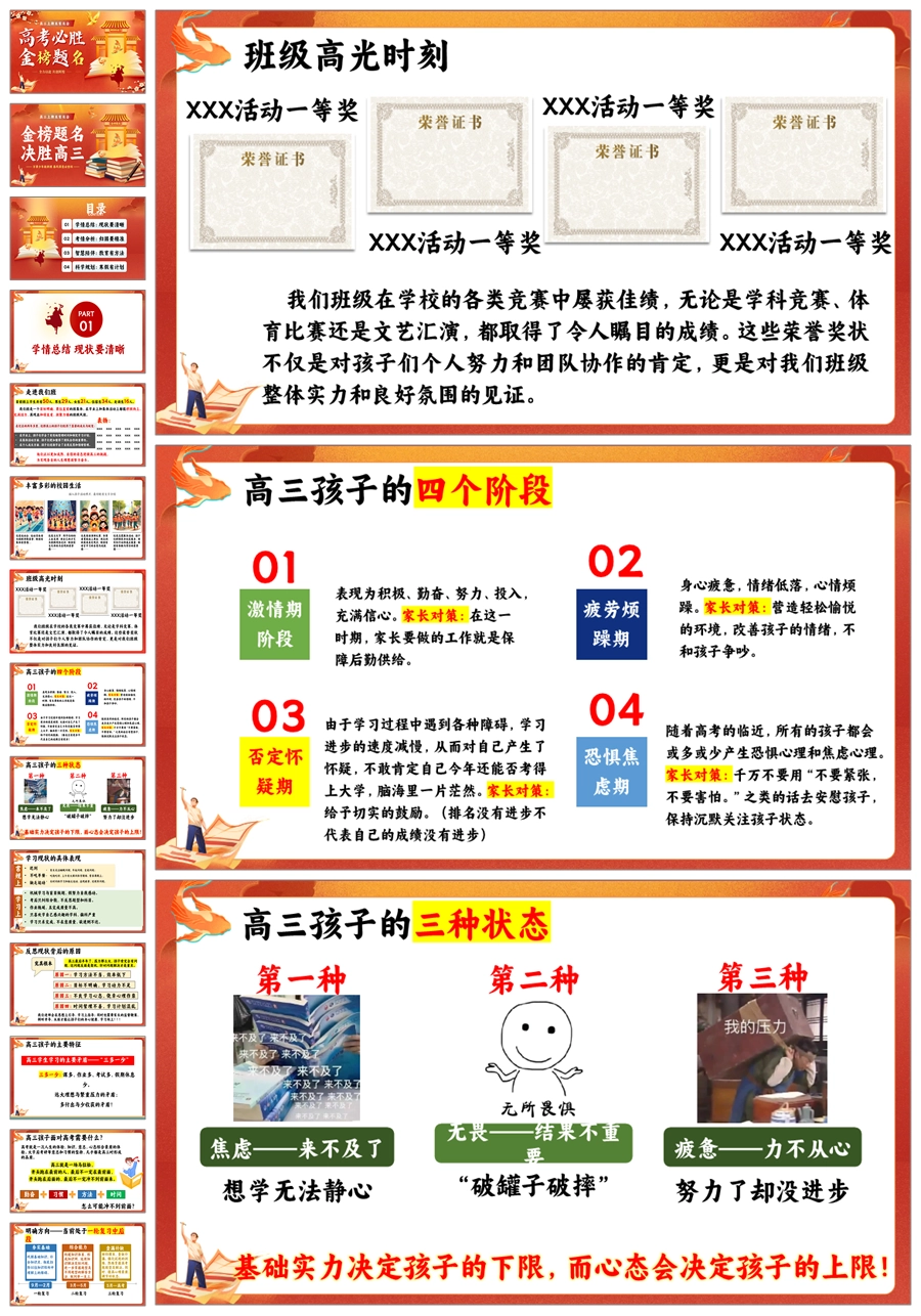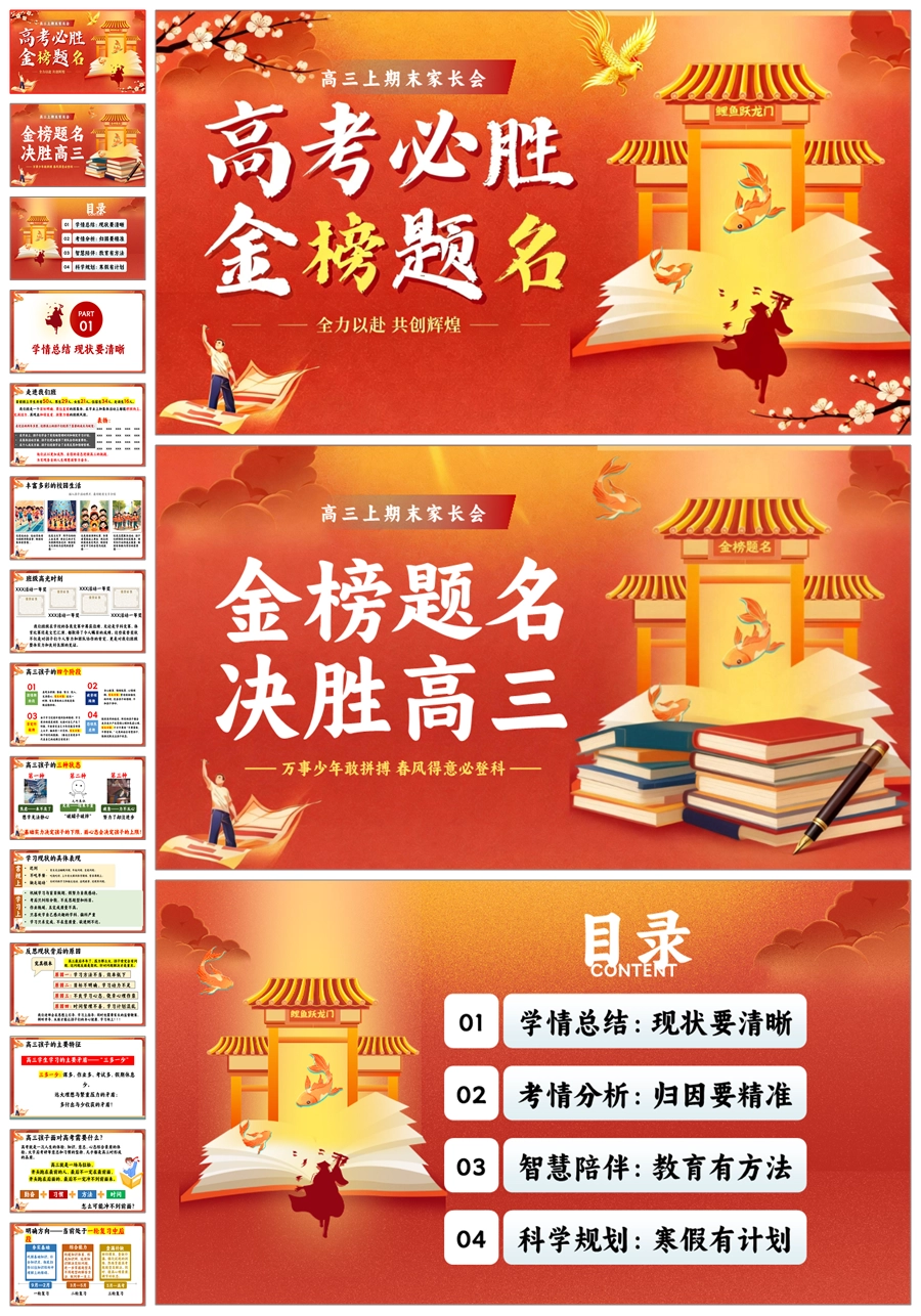 【8634】高三上学期期末家长会《高考必胜金榜题名》PPT课件+发言稿