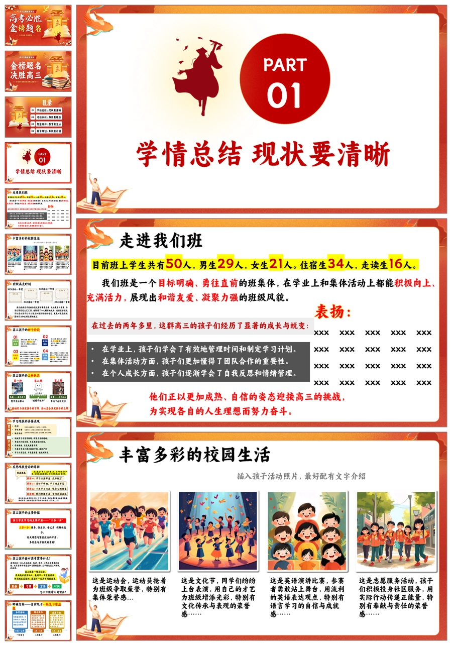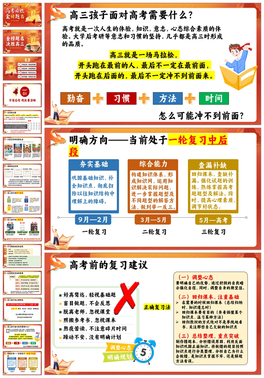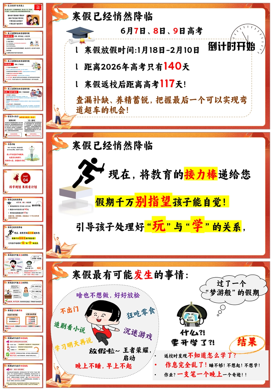 【8634】高三上学期期末家长会《高考必胜金榜题名》PPT课件+发言稿
