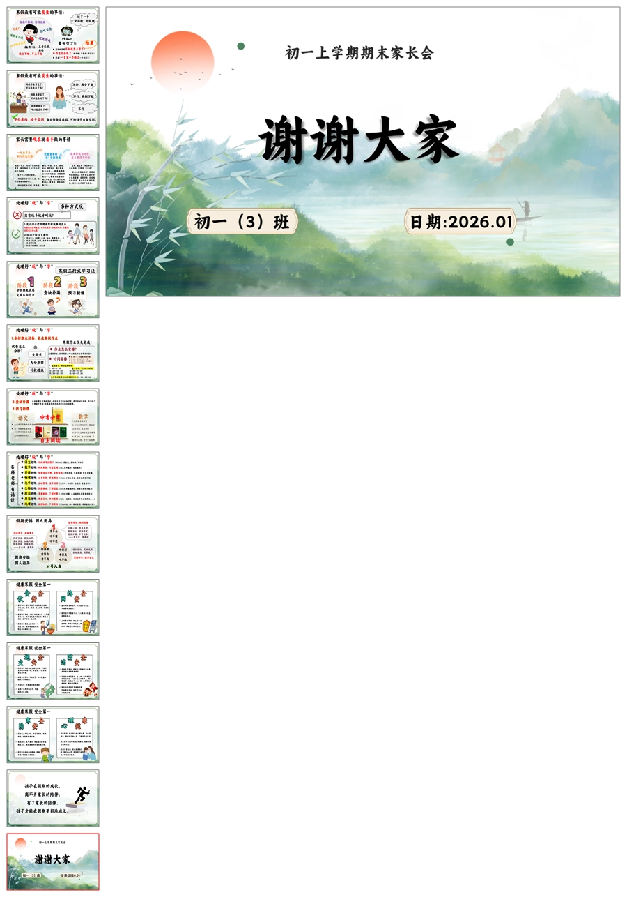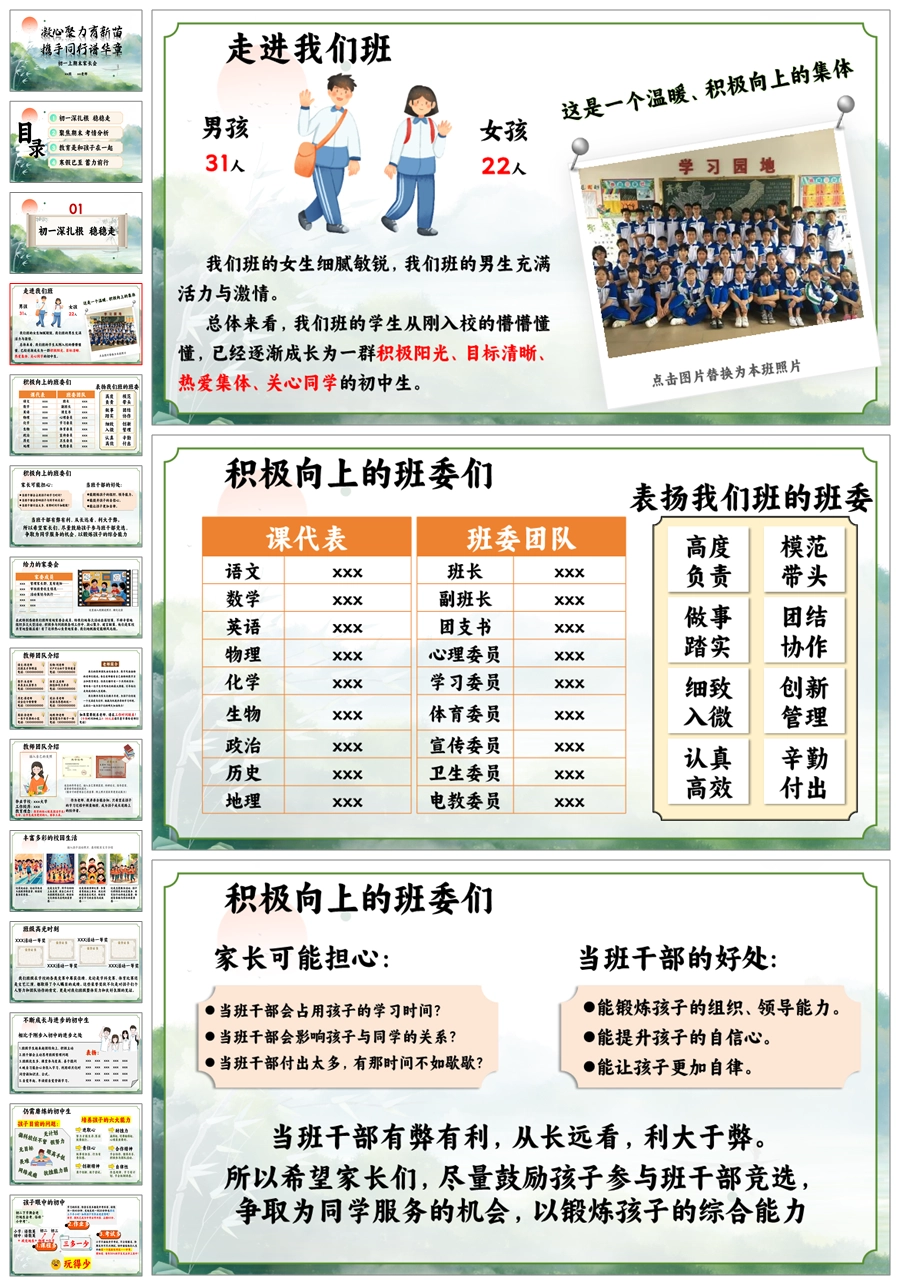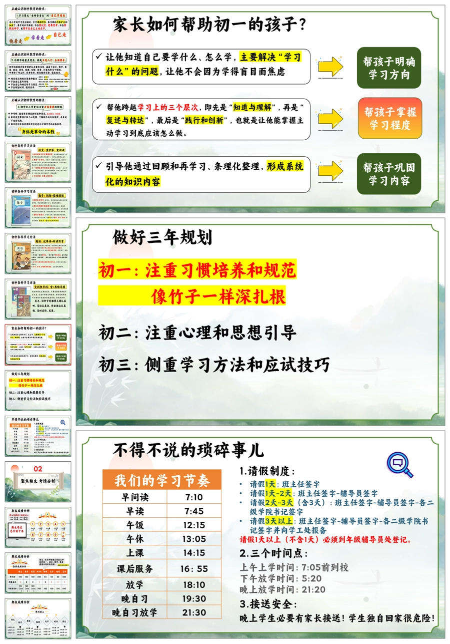 【8635】【初一上期末家长会】《凝心聚力育新苗,携手同行谱华章》七年级上学期期末家长会PPT课件+发言稿