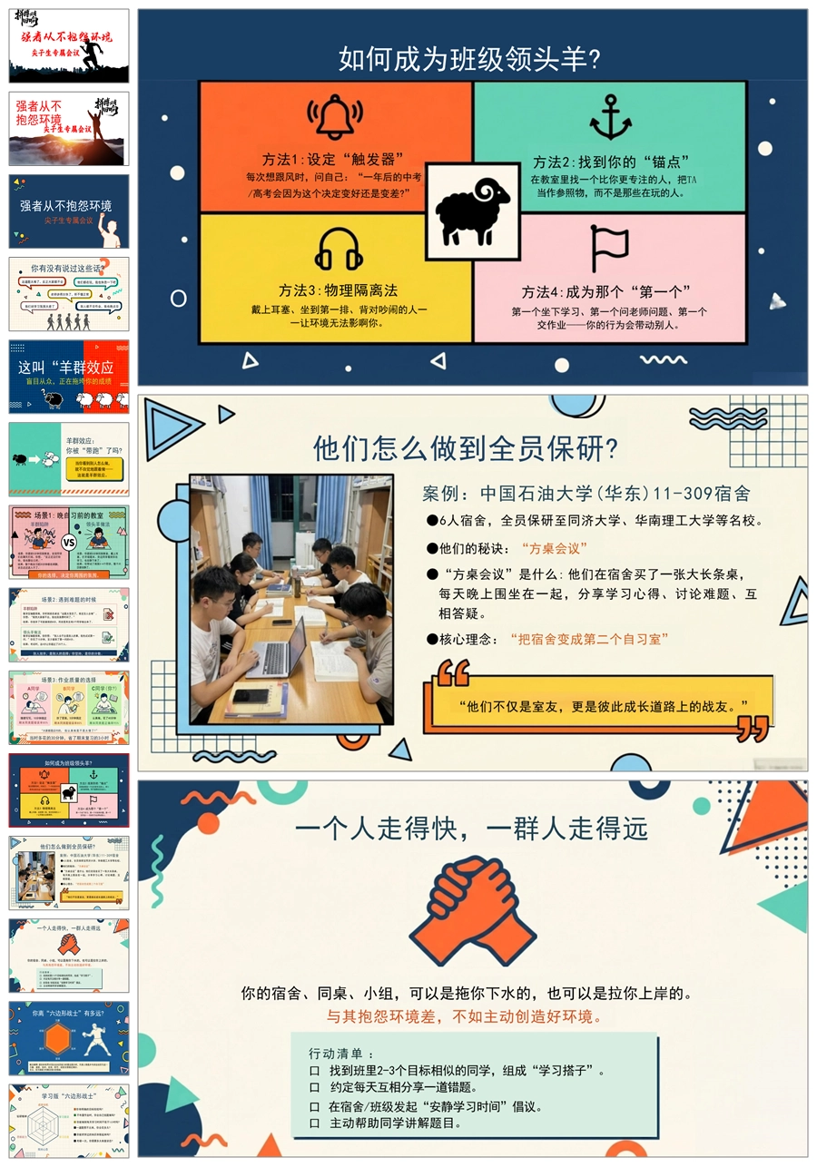 【8640】《强者从不抱怨环境》尖子生会议主题班会ppt课件+教案
