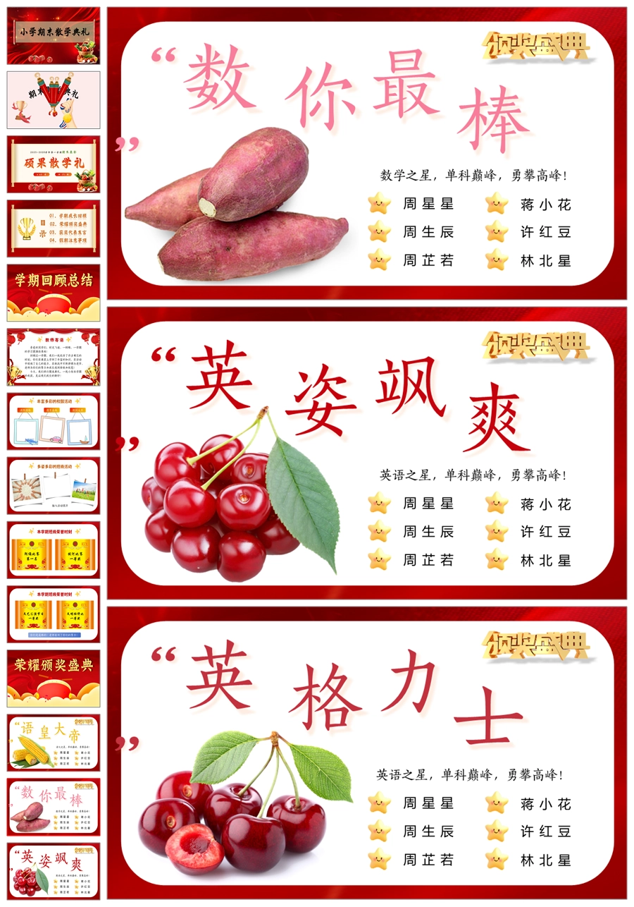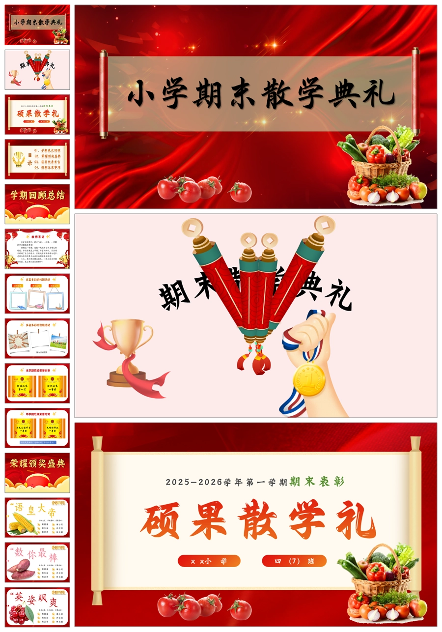 【8644】《小学期末蔬果表彰》小学寒假散学典礼安全教育PPT课件