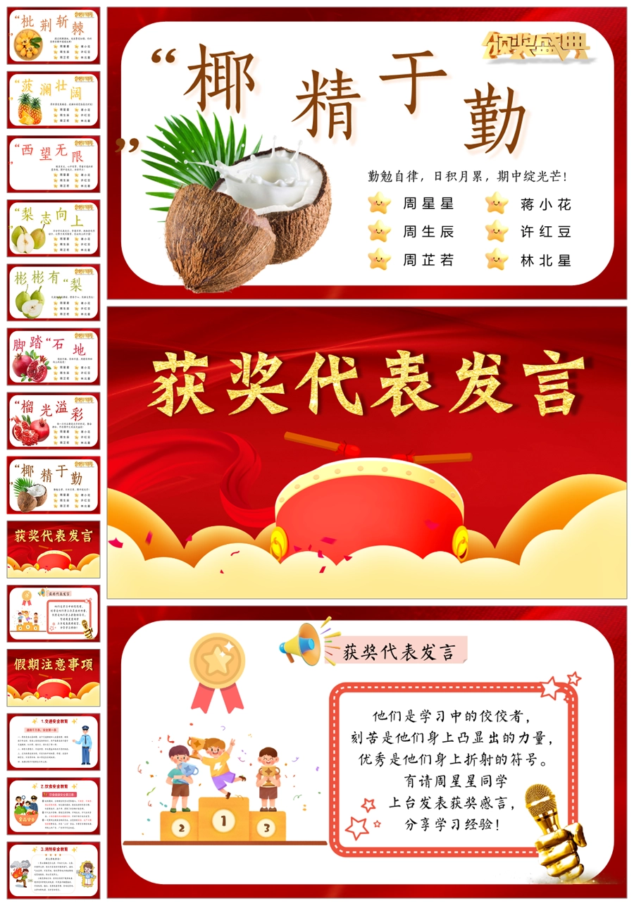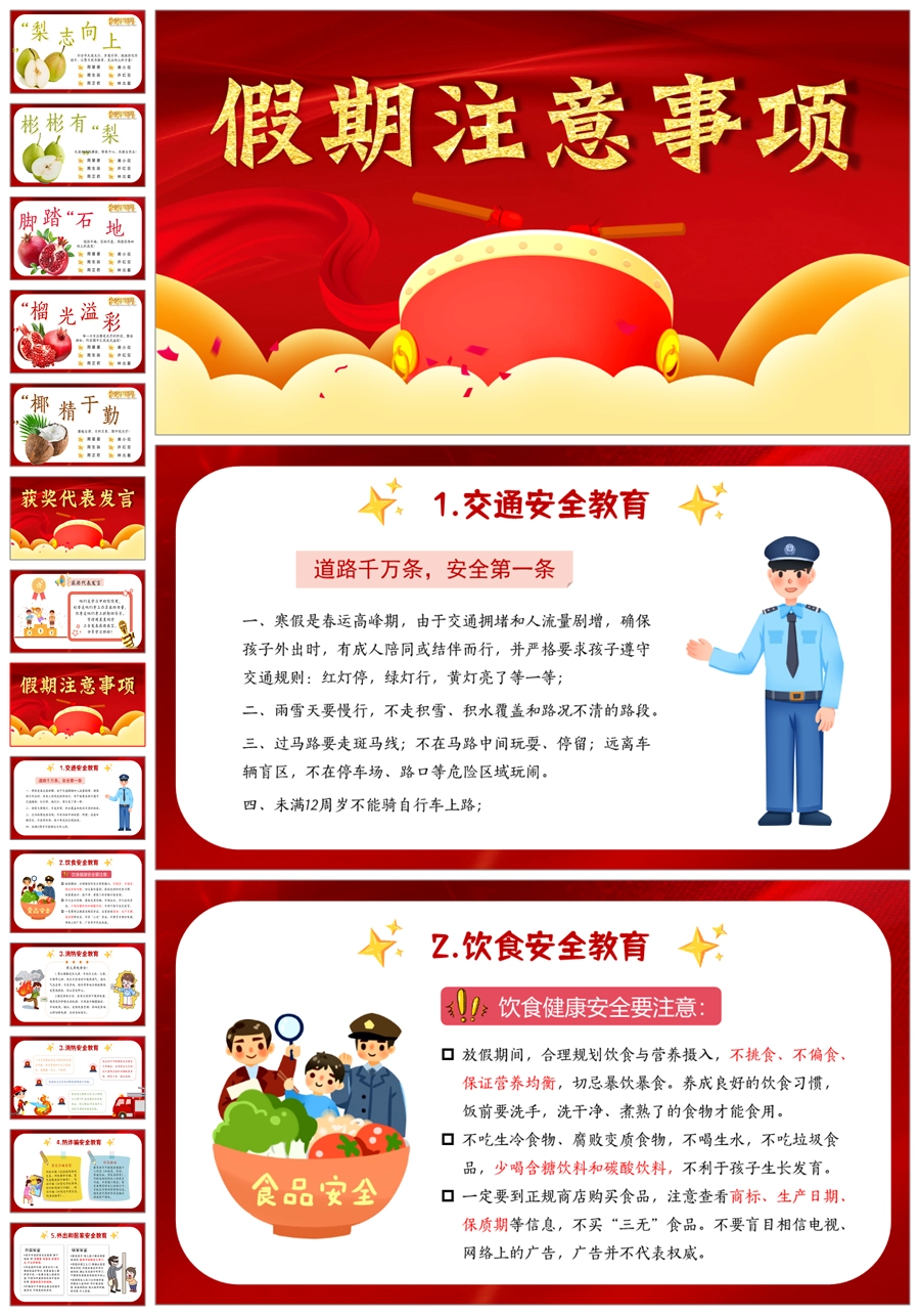 首页 小学班会 【8644】《小学期末蔬果表彰》小学寒假散学典礼安全教育PPT课件