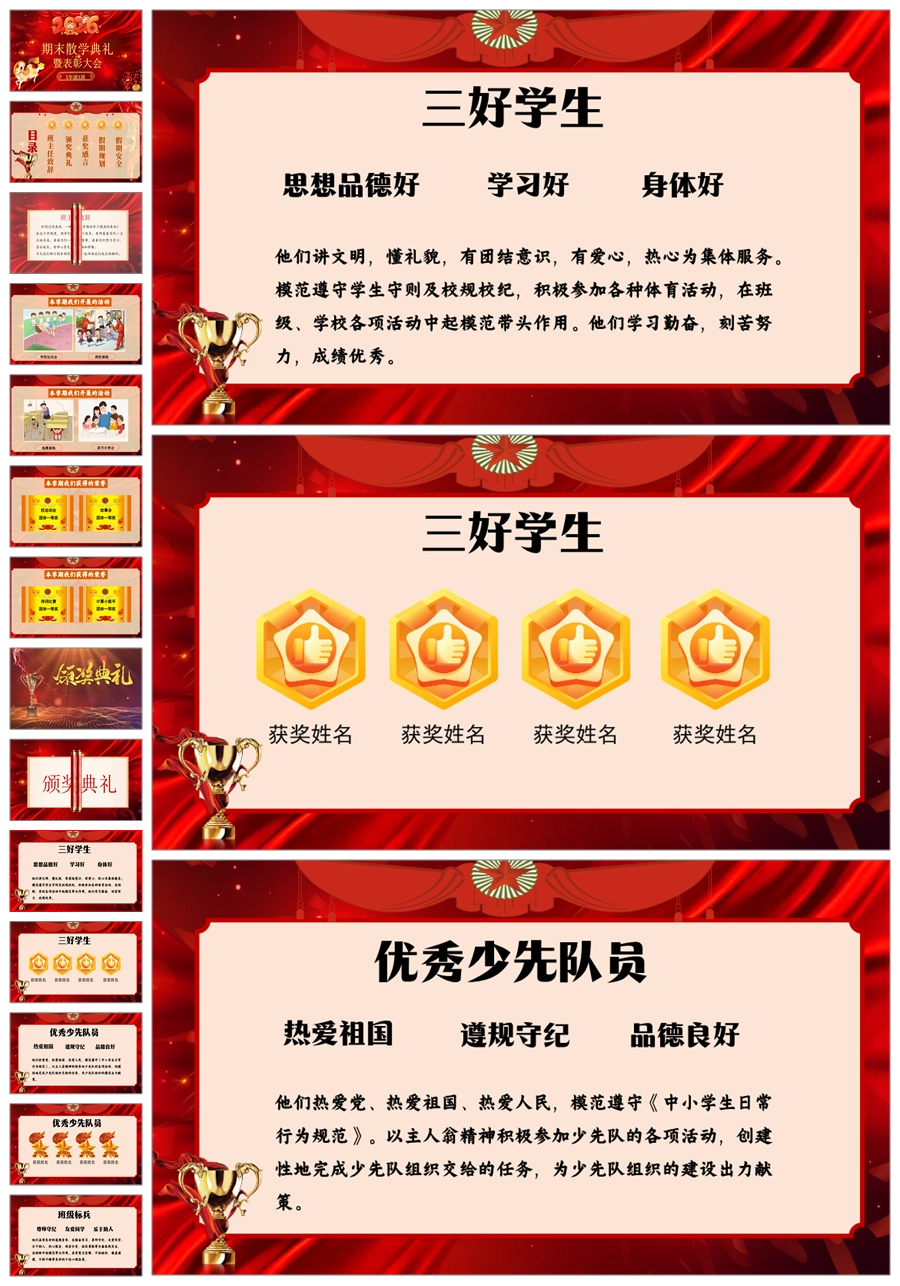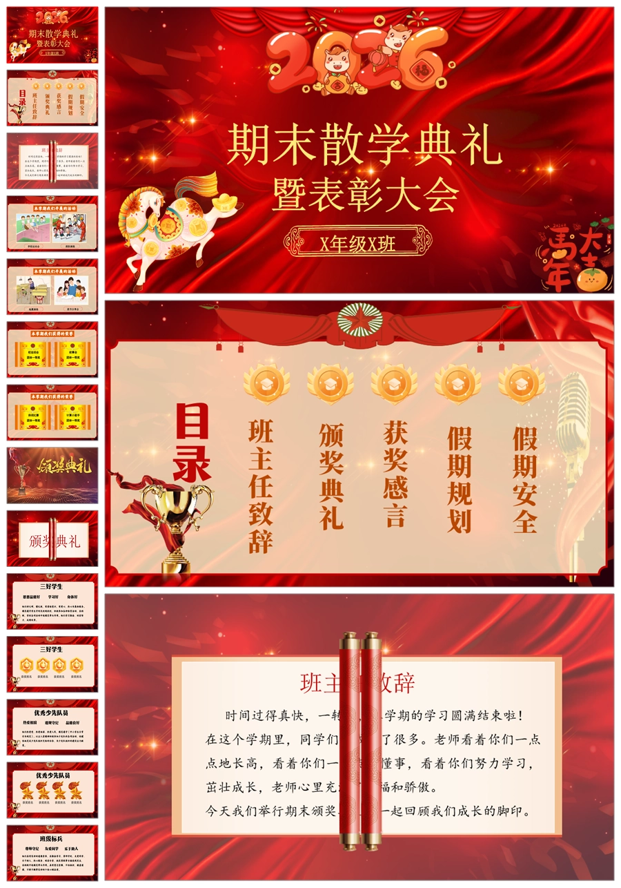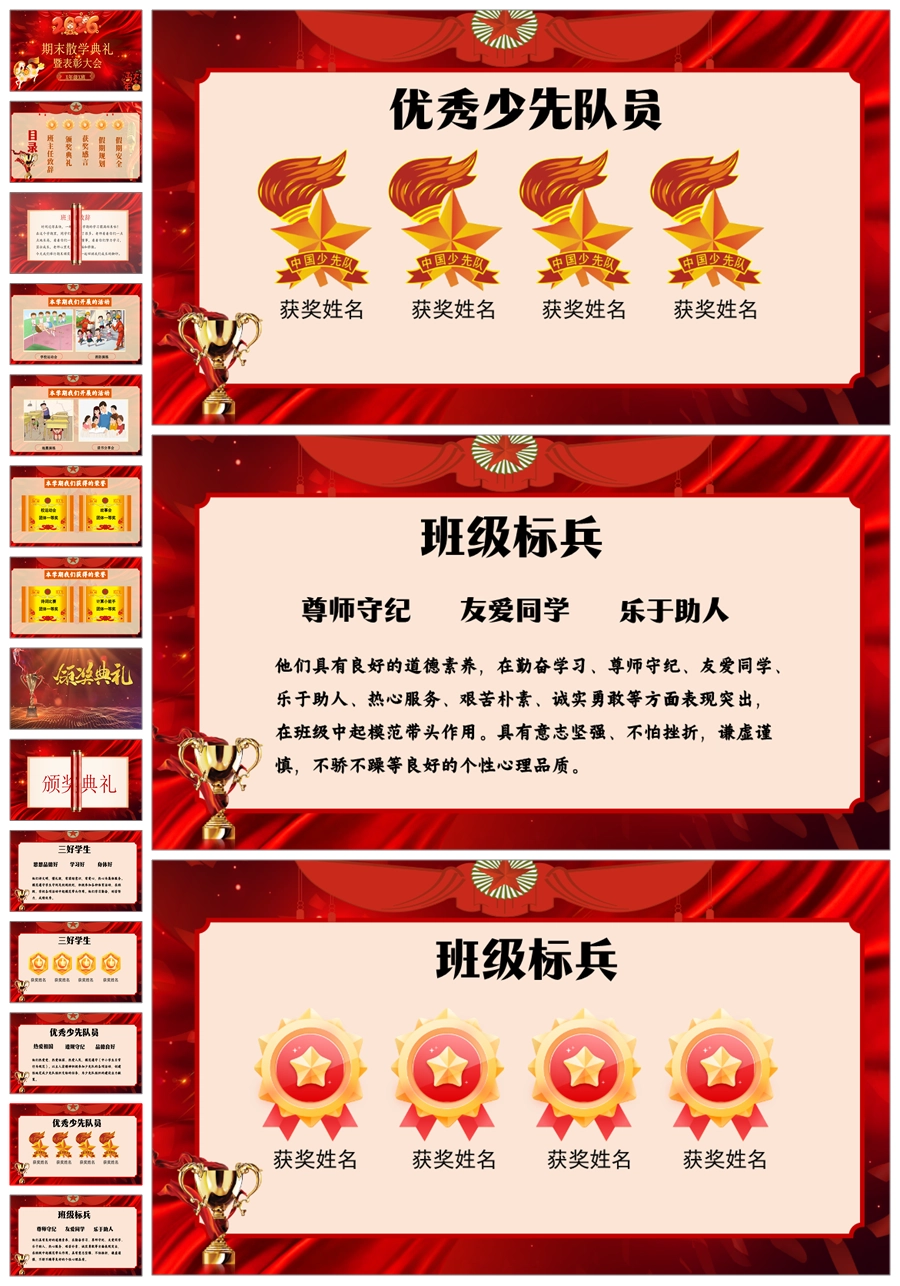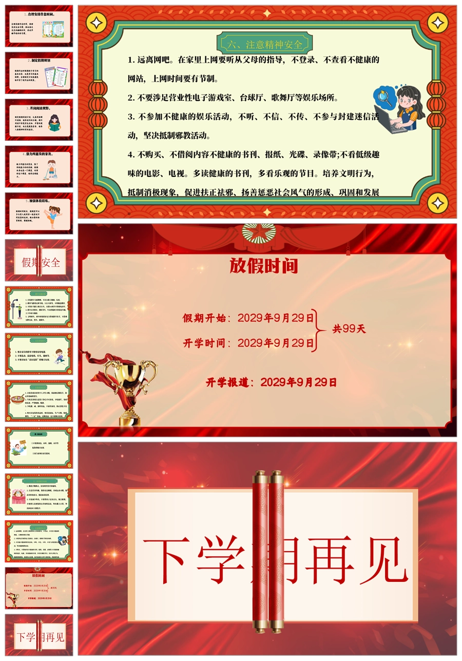 【8645】小学期末散学典礼班会散学典礼安全教育班会PPT课件+发言稿