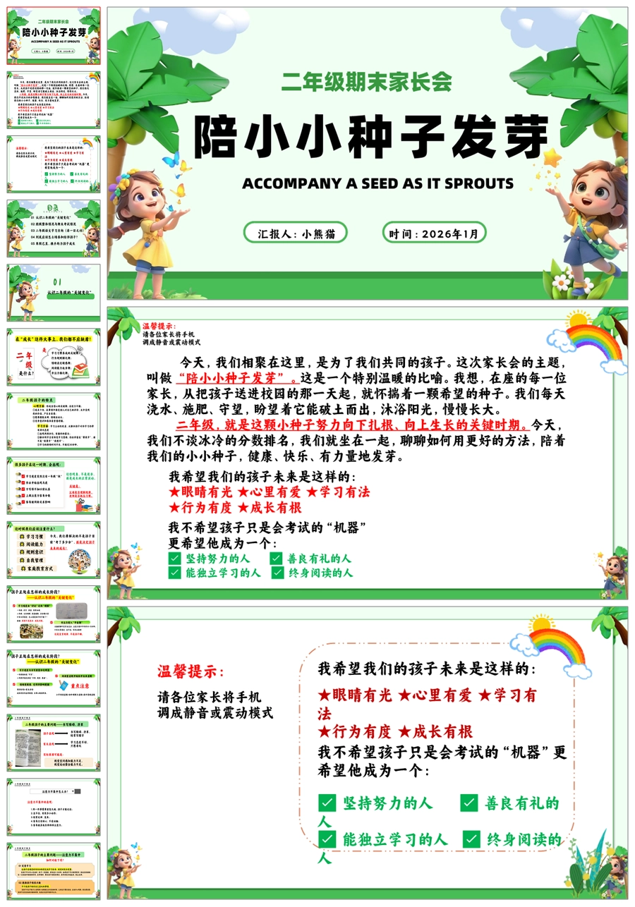 【5890】【二年级期末家长会】《陪小小种子发芽》PPT课件+发言稿