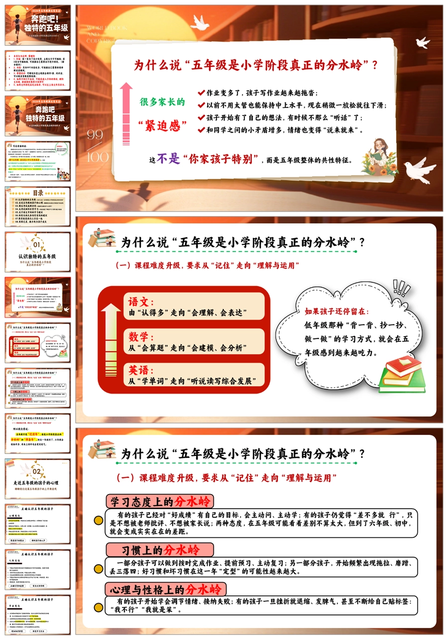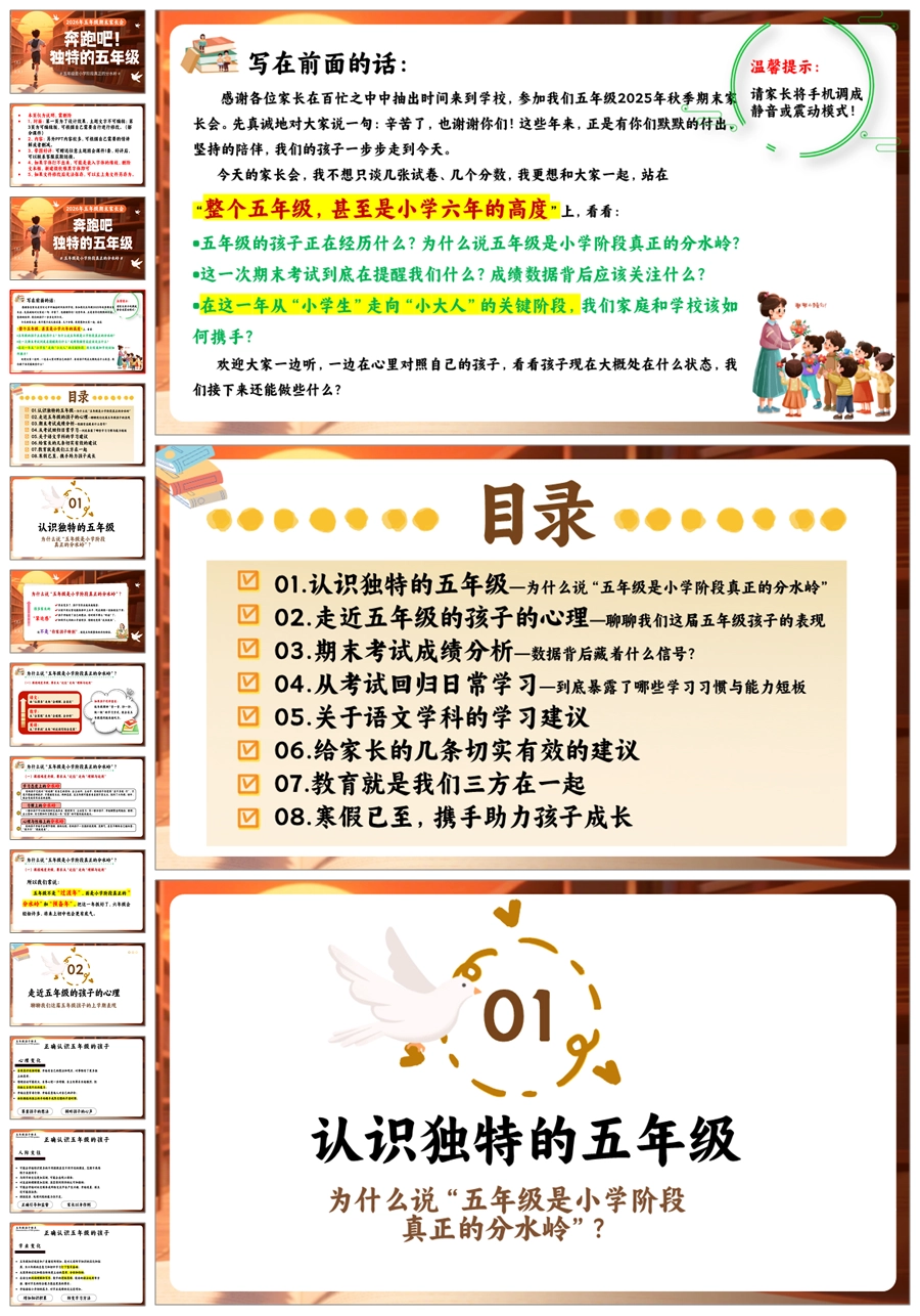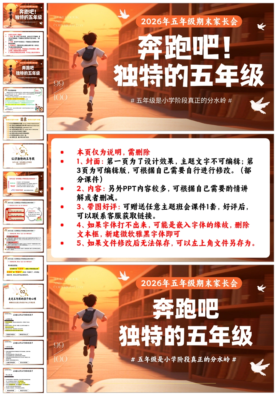 【5894】【五年级期末家长会】《奔跑吧!独特的五年级》PPT课件+发言稿