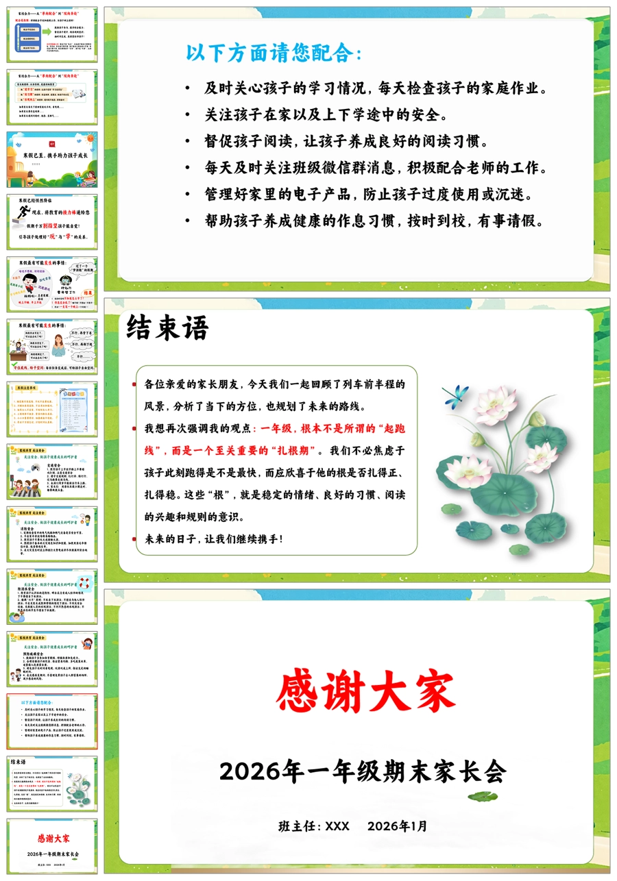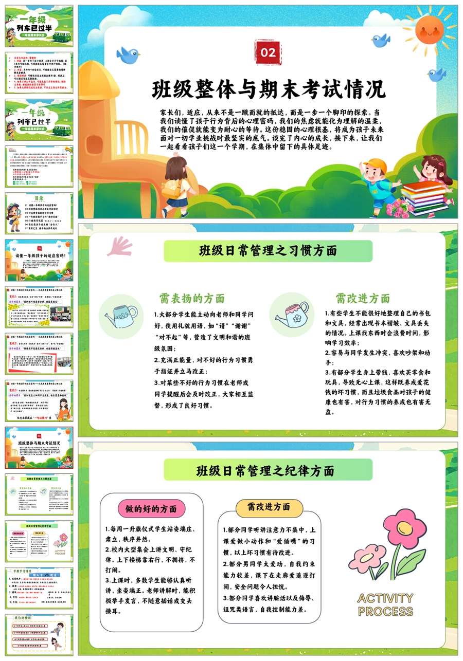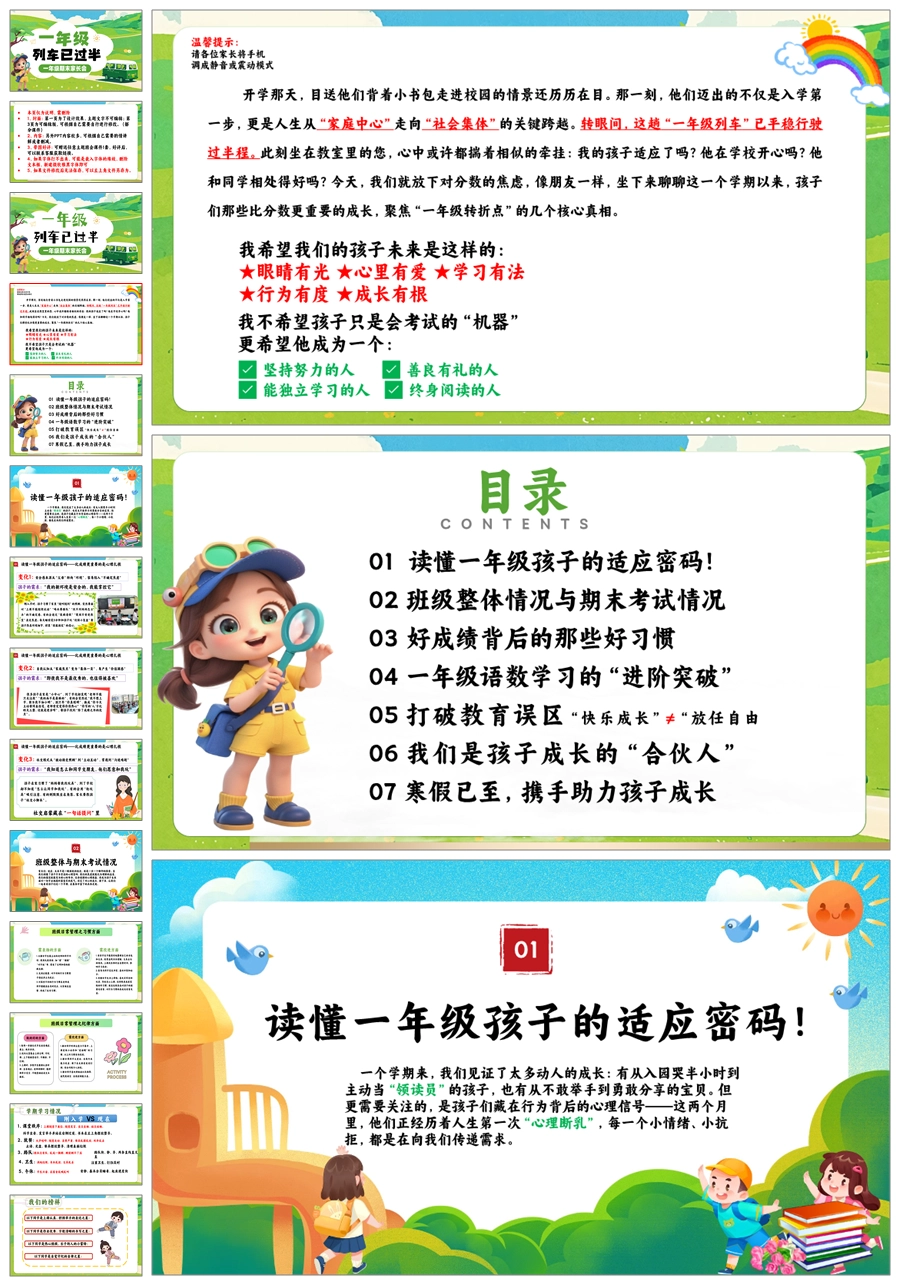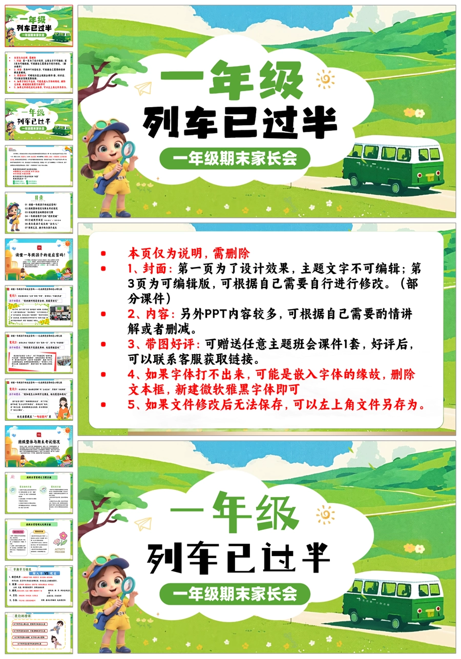 【5895】【一年级期末家长会】 《一年级列车已过半》PPT课件+发言稿
