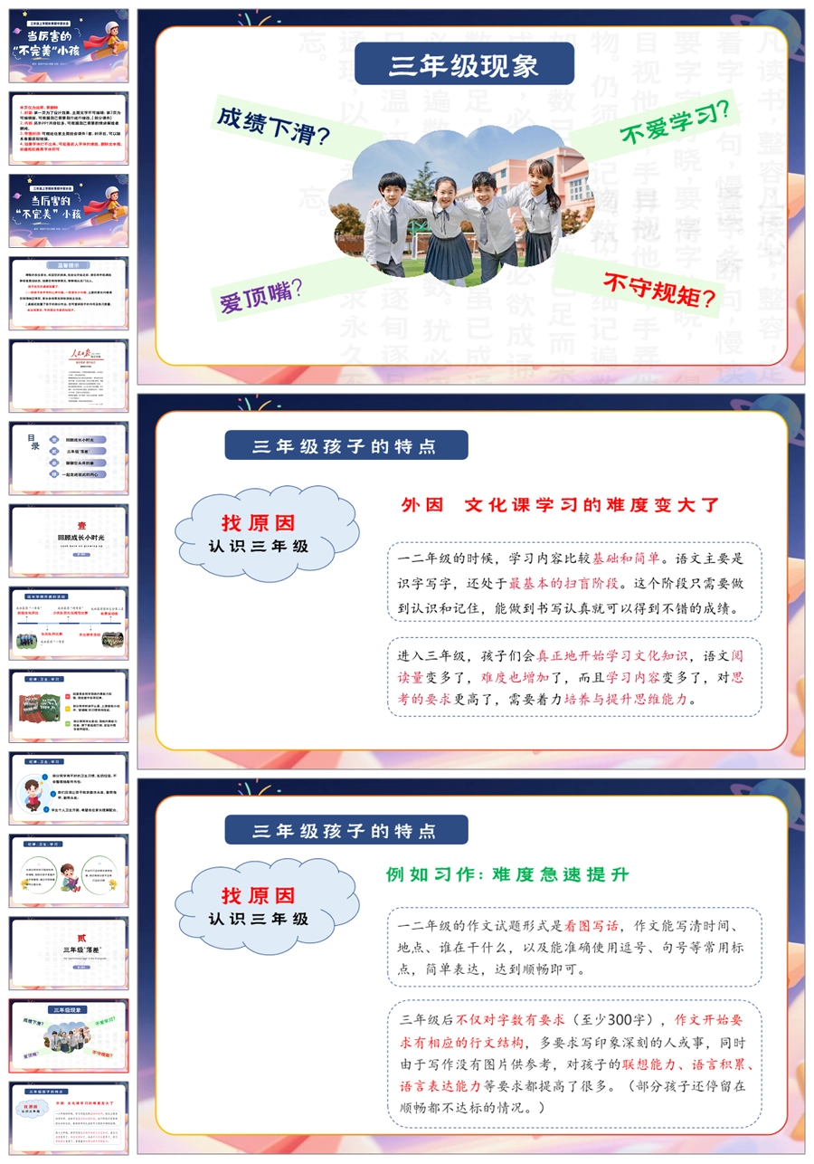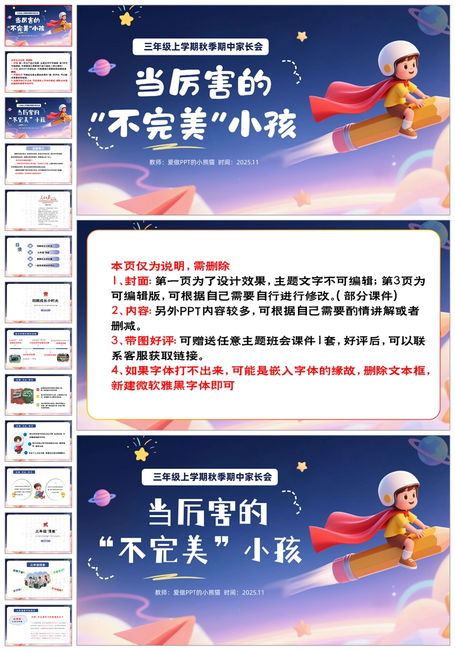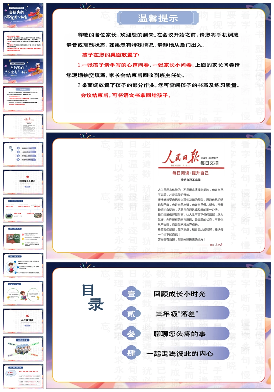 【5898】三上期中家长会《当厉害的不完美小孩》三年级上学期期中家长会PPT课件+发言稿
