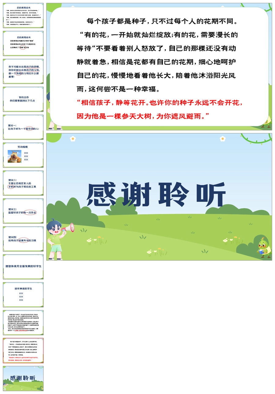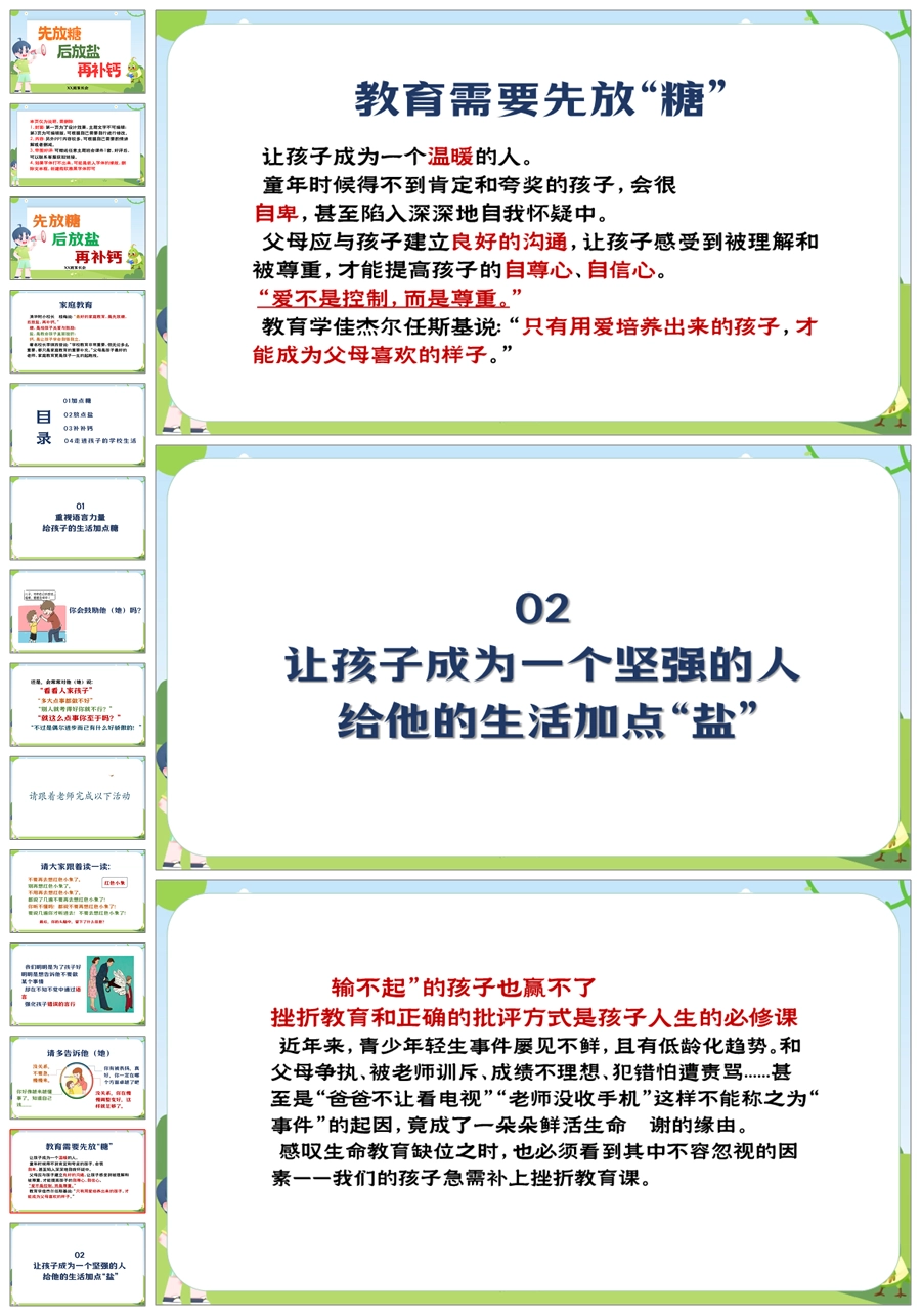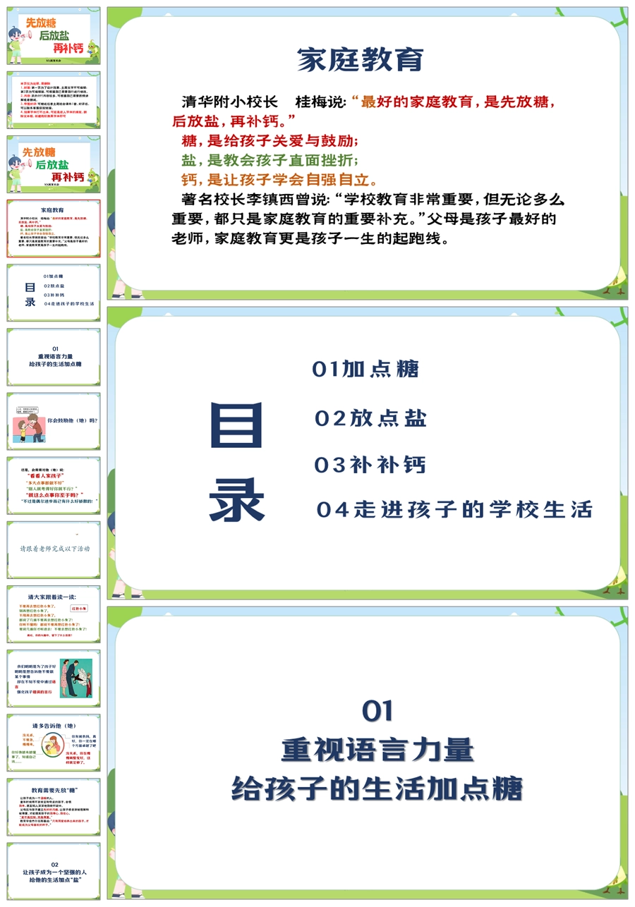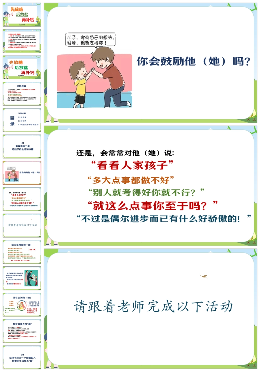 【5901】通用小学家长会《先放糖 再加盐 补点钙》PPT课件+发言稿