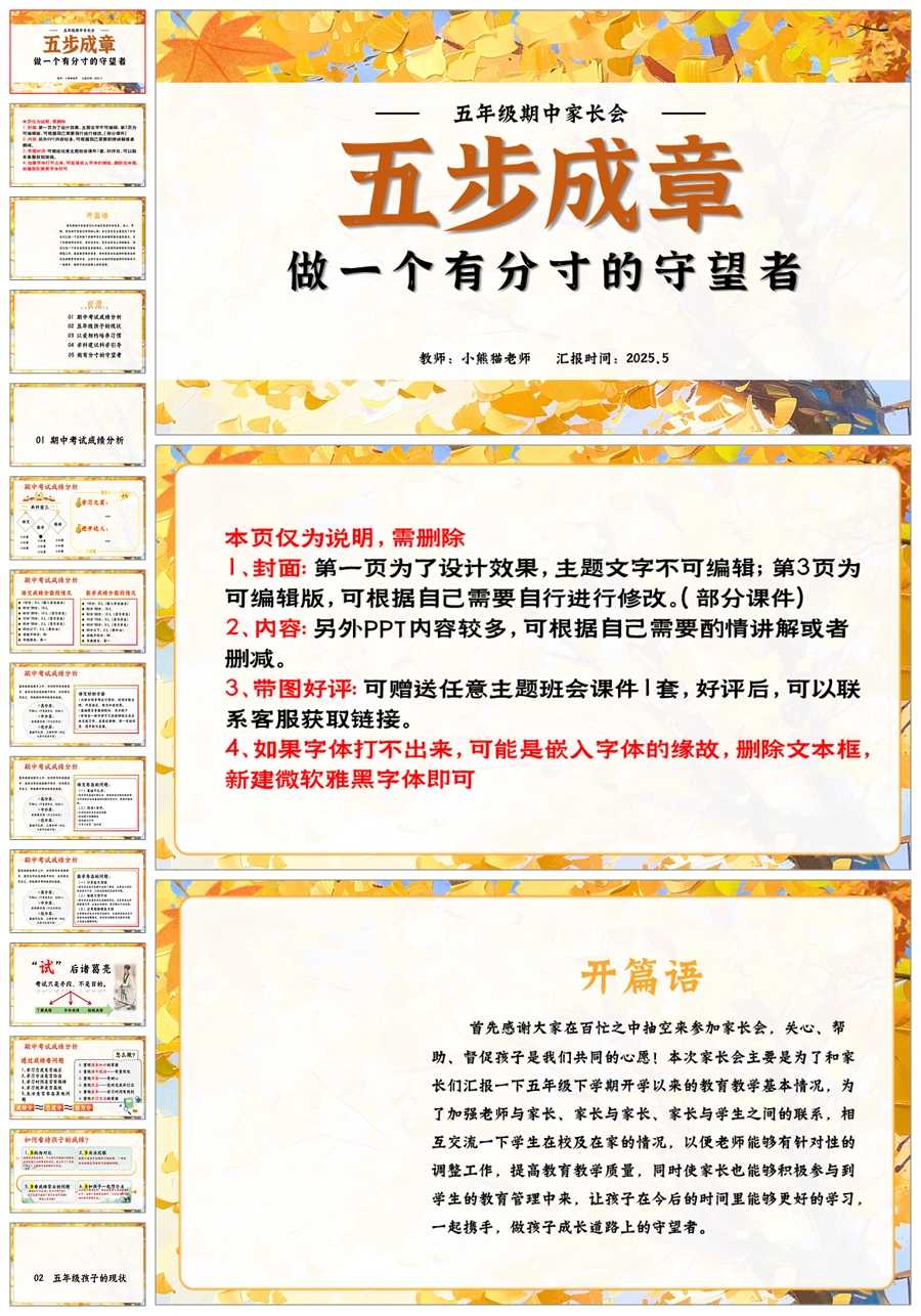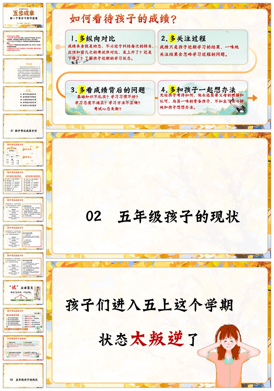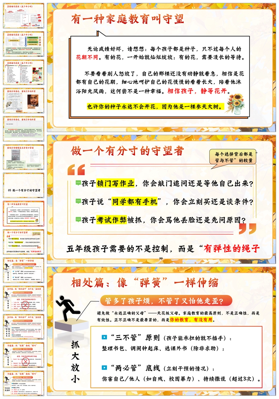 【5902】五上期中家长会《五步成章:做一个有分寸的守望者》五年级上学期期中家长会PPT课件+发言稿
