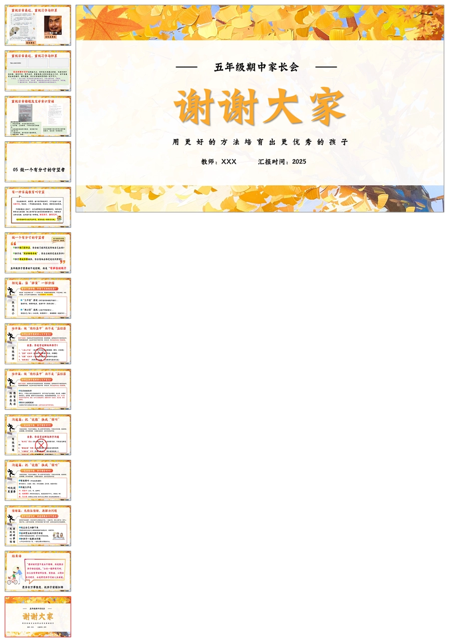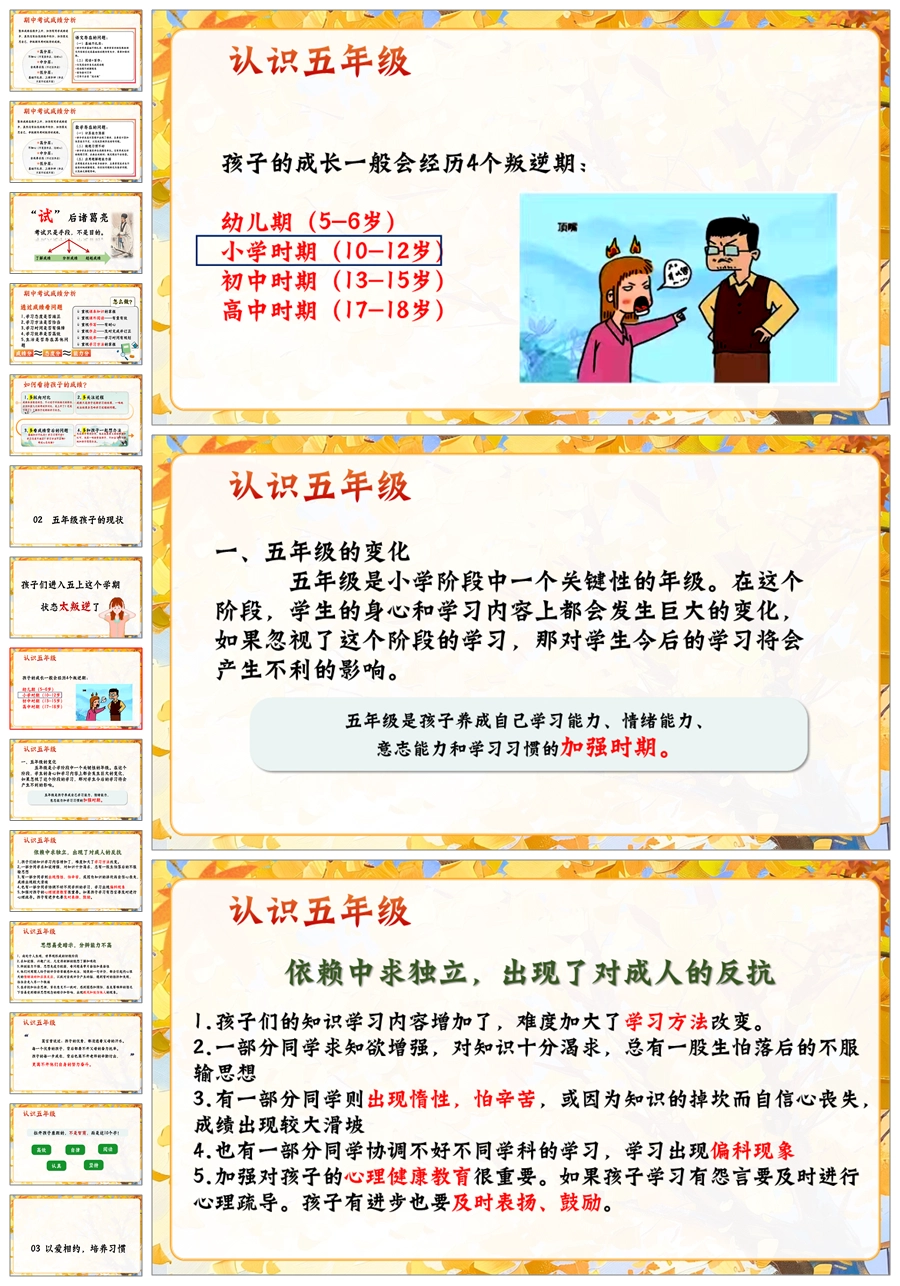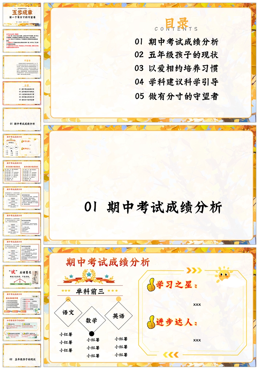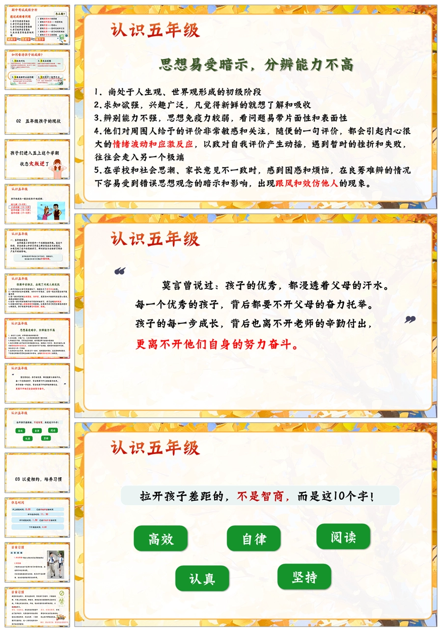 【5902】五上期中家长会《五步成章:做一个有分寸的守望者》五年级上学期期中家长会PPT课件+发言稿
