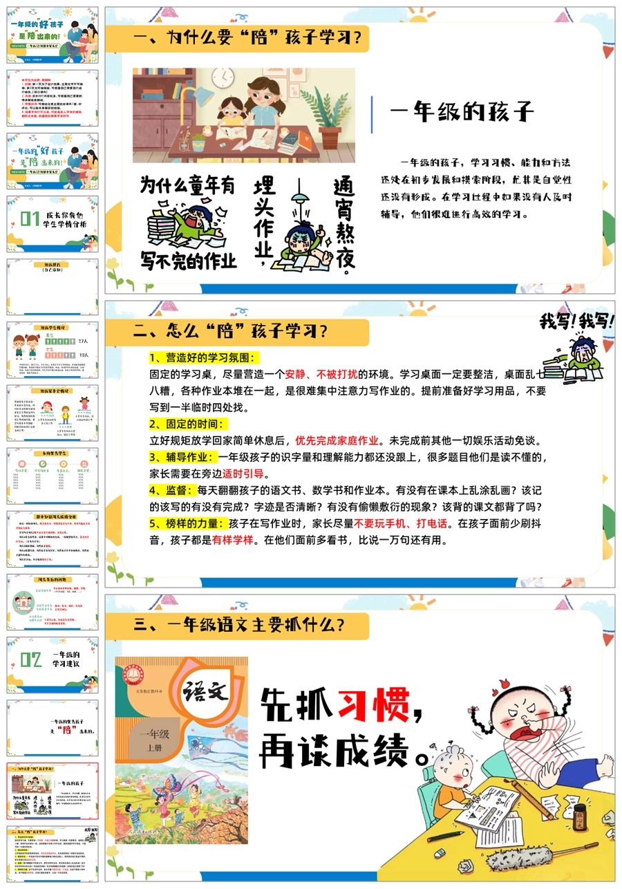 【5909】一上期中家长会《一年级的好孩子,是陪出来的》一年级上学期期中家长会PPT课件+发言稿