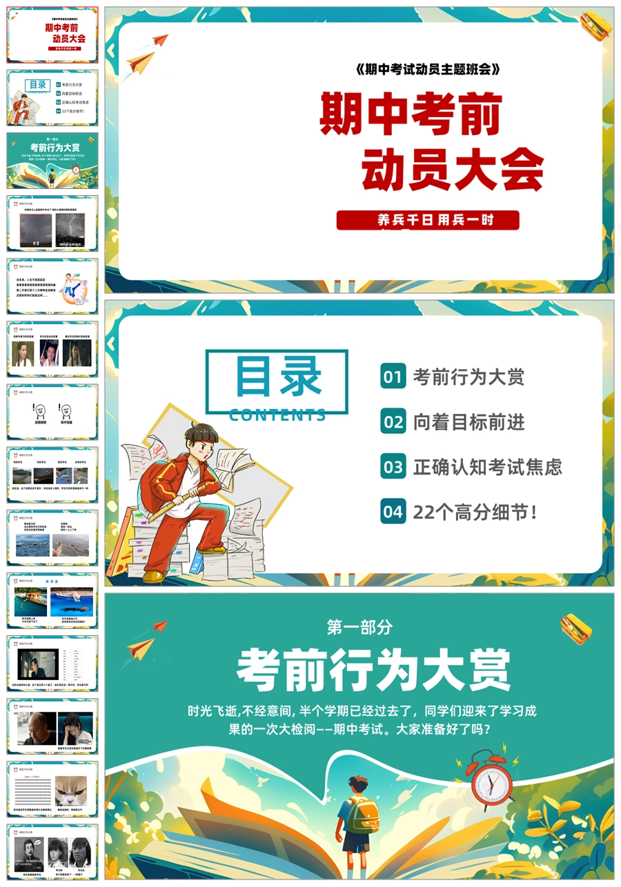 【5910】主题班会通用《期中动员大会》养兵千日 用兵一时PPT课件+发言稿