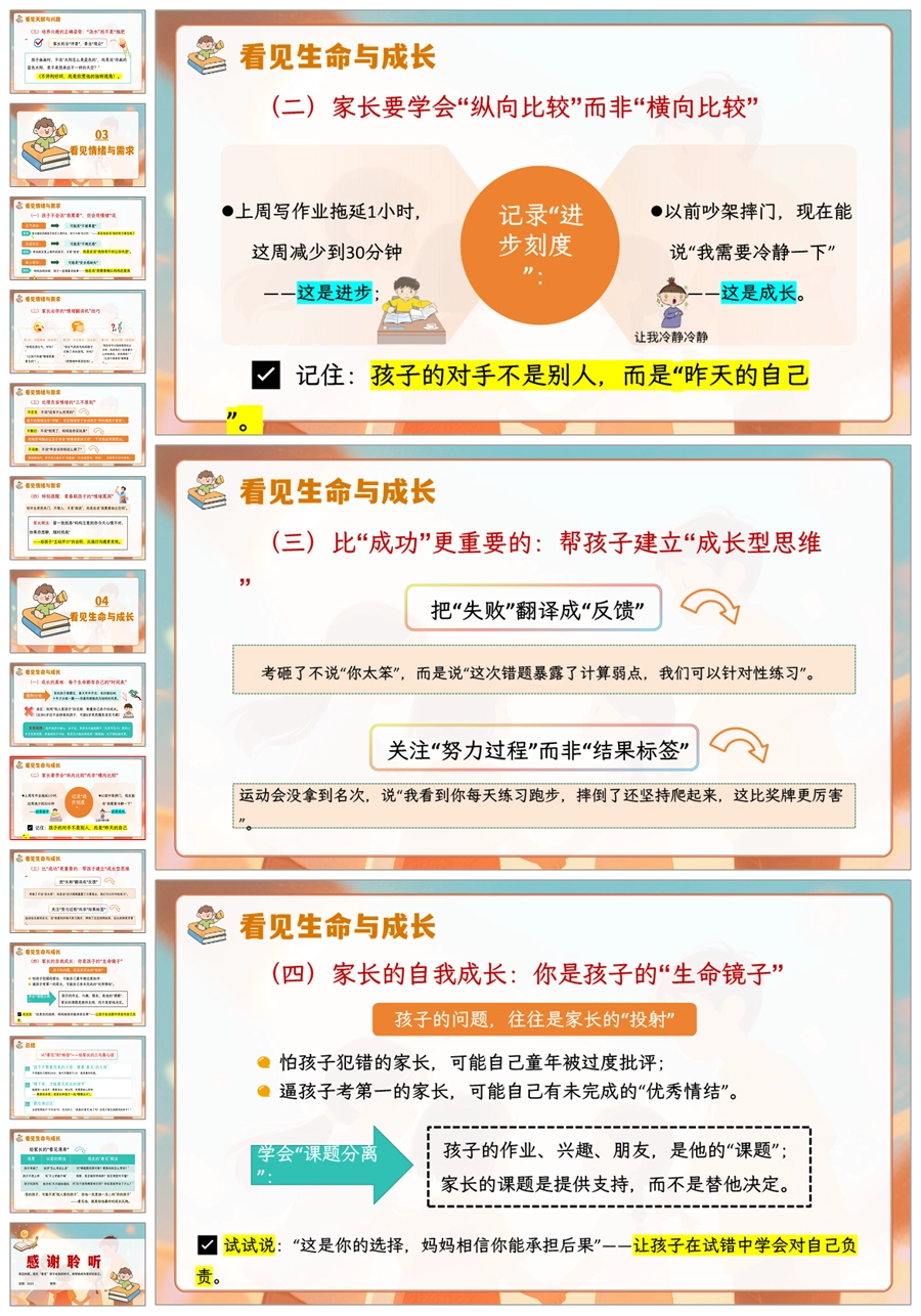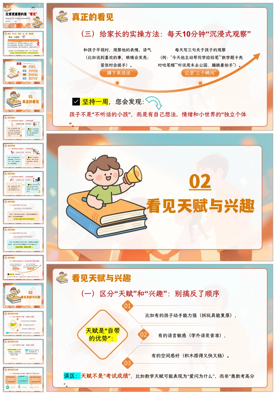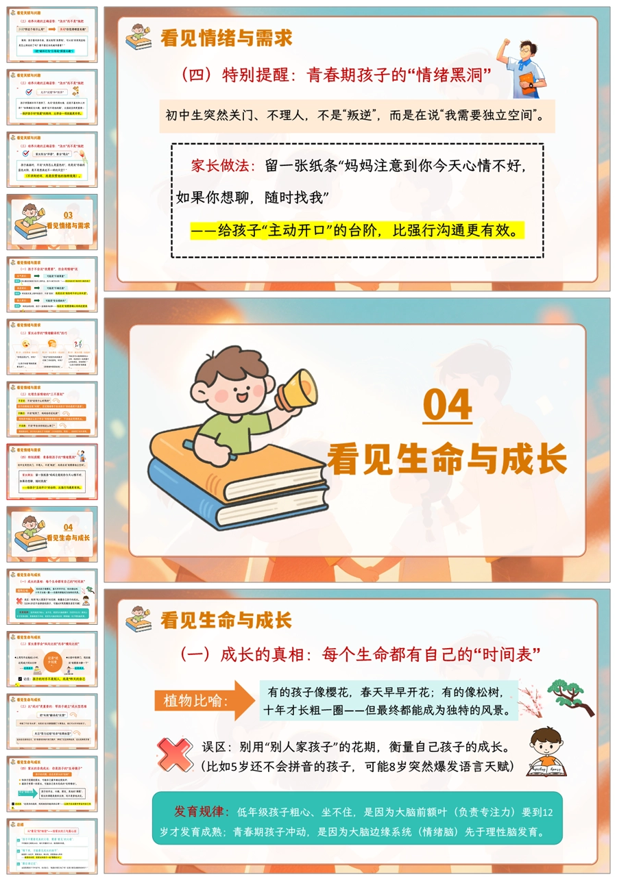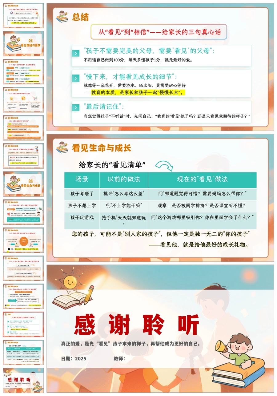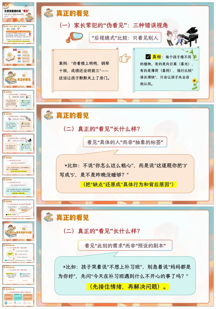 【5911】《比爱更重要的是“看见”》中小学通用家长会讲座PPT课件+发言稿