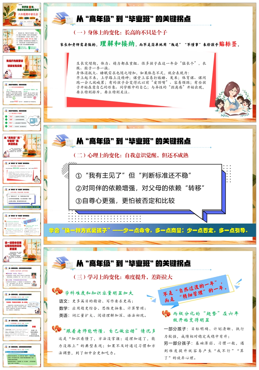 【5921】【六年级】【秋季上】【期中】家长会《牵手第六年,向着毕业奔跑的孩子们》PPT课件+发言稿