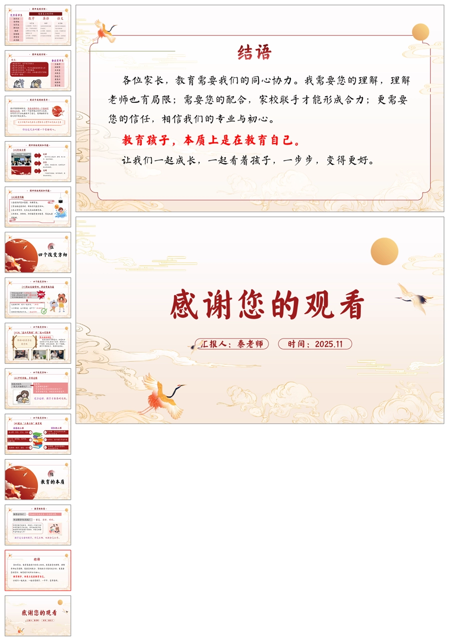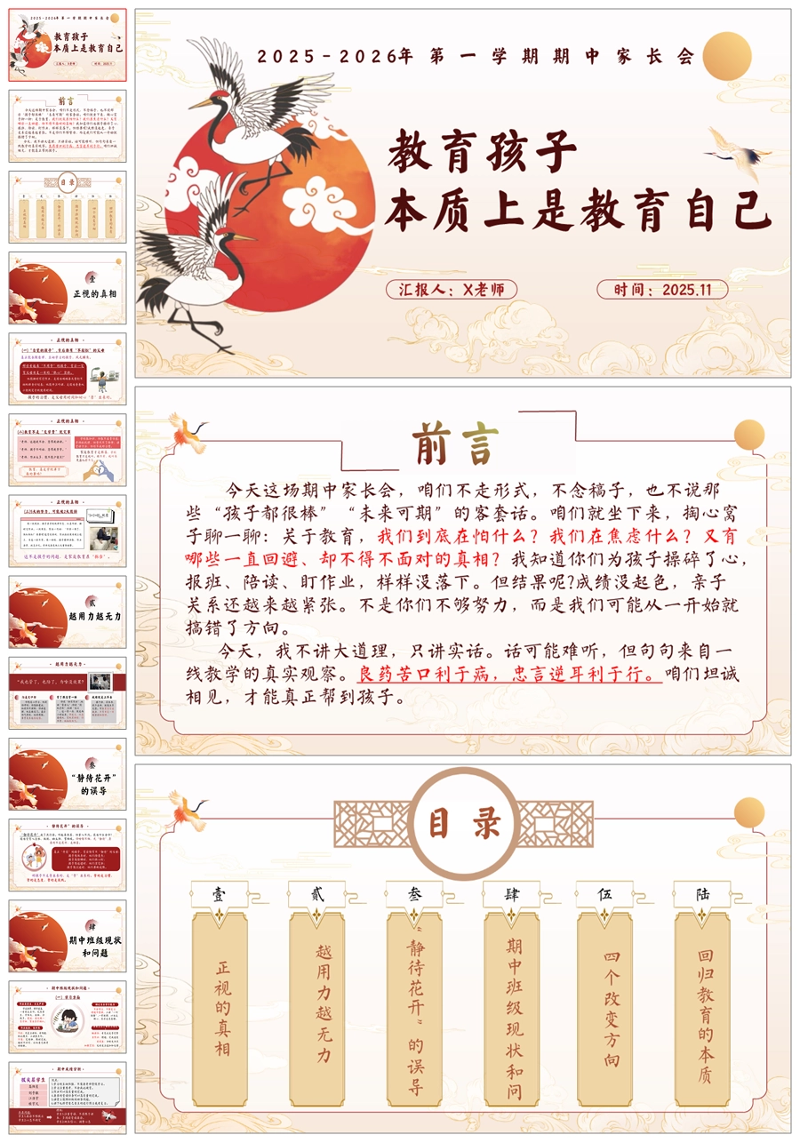 【5929】【通用】【秋季上】【期中】家长会《教育孩子,本质上是教育自己》PPT课件+发言稿